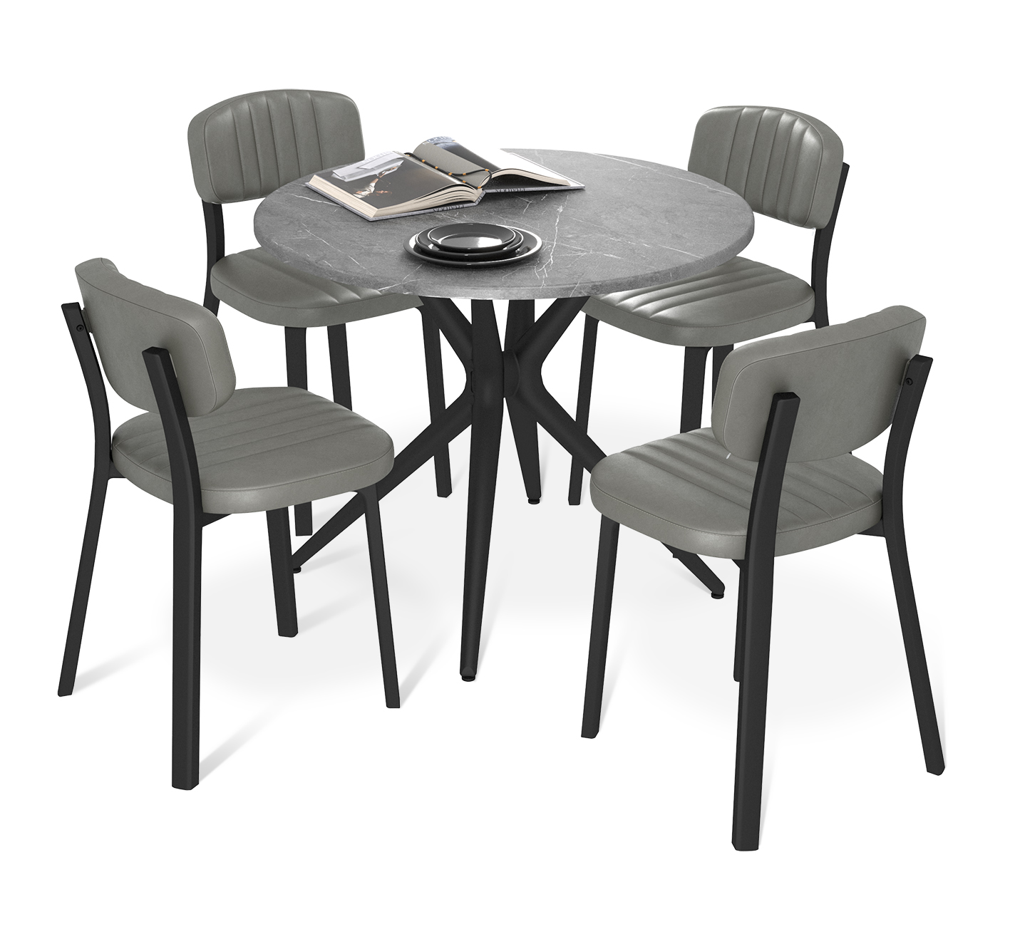Стол с красивой столешницей из МДФ под натуральный мрамор и стулья с сидениями из кож.зама на пластиковом каркасе будет гармонично и со вкусом смотреться в доме, офисе, дизайн-студии, кафе, баре, ресторане.