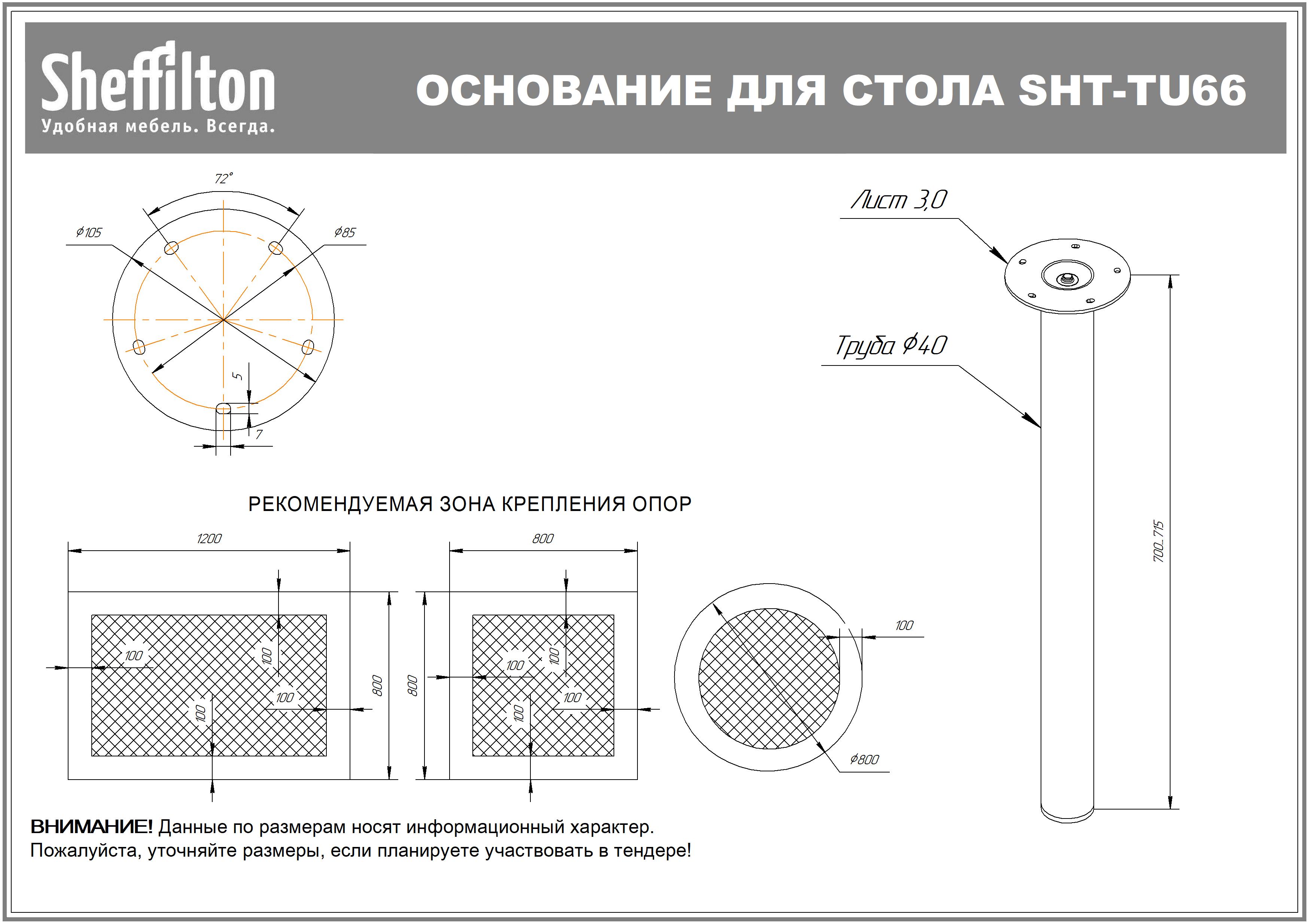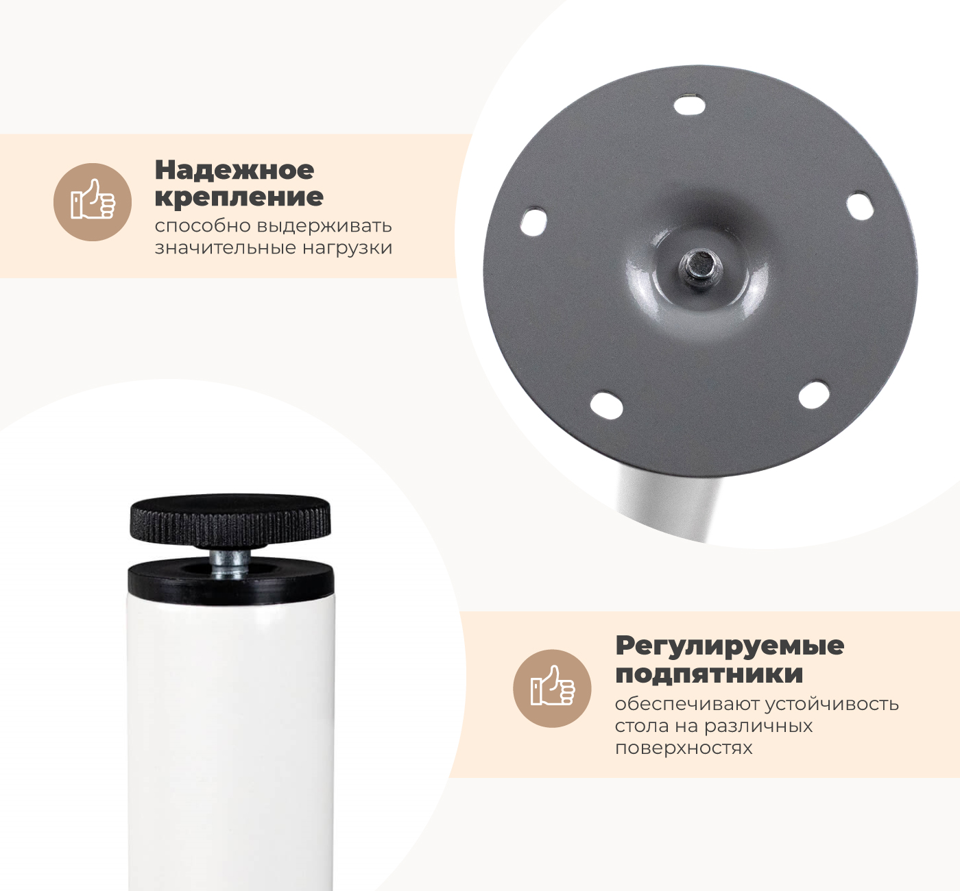 Подстолье выполнено из металла, что обеспечивает прочность и устойчивость. Оно способно выдерживать значительные нагрузки и обеспечивает стабильную основу для стола за счет надежного крепления.