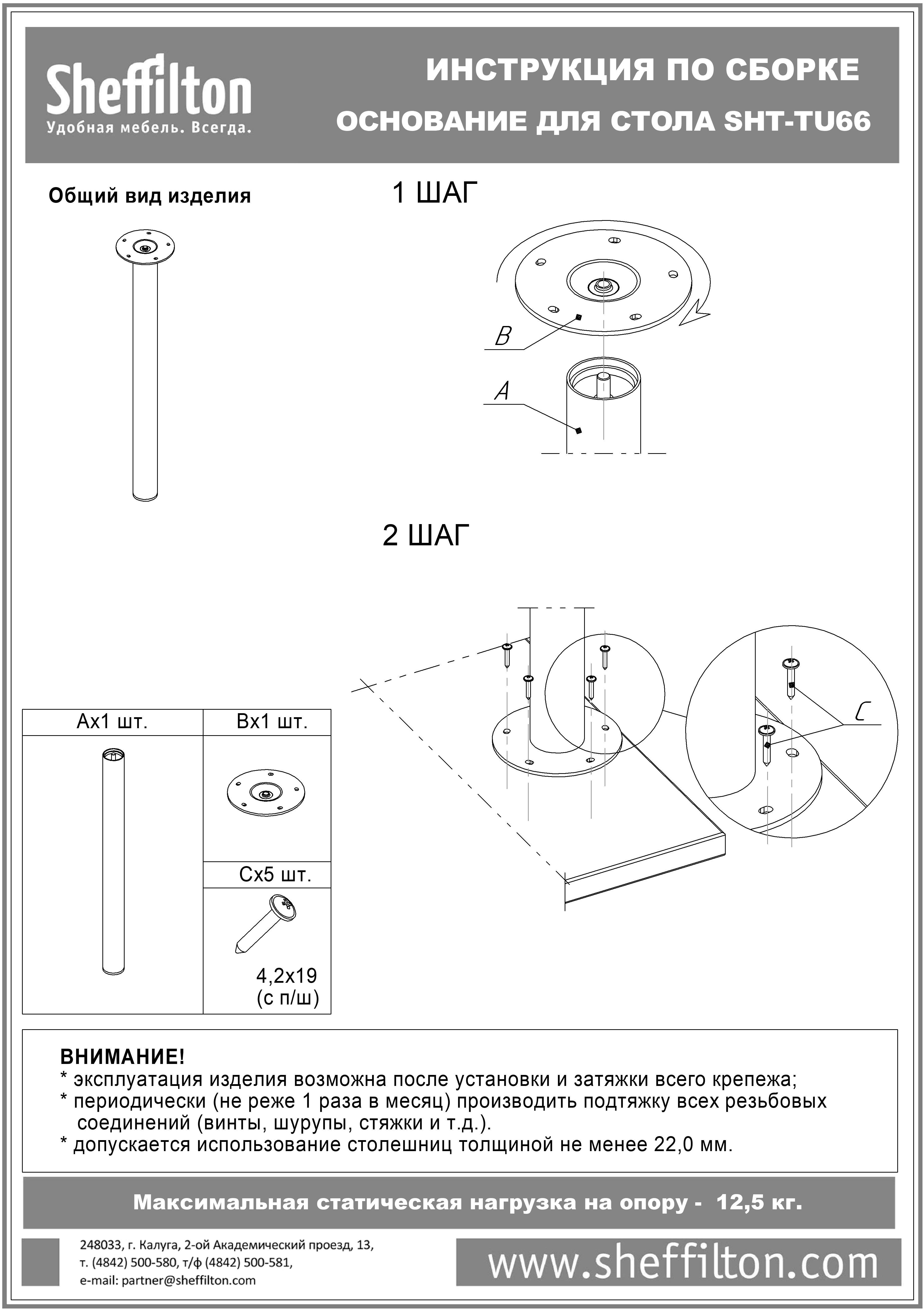 Максимальная статическая нагрузка на одну опору – 12,5 кг.