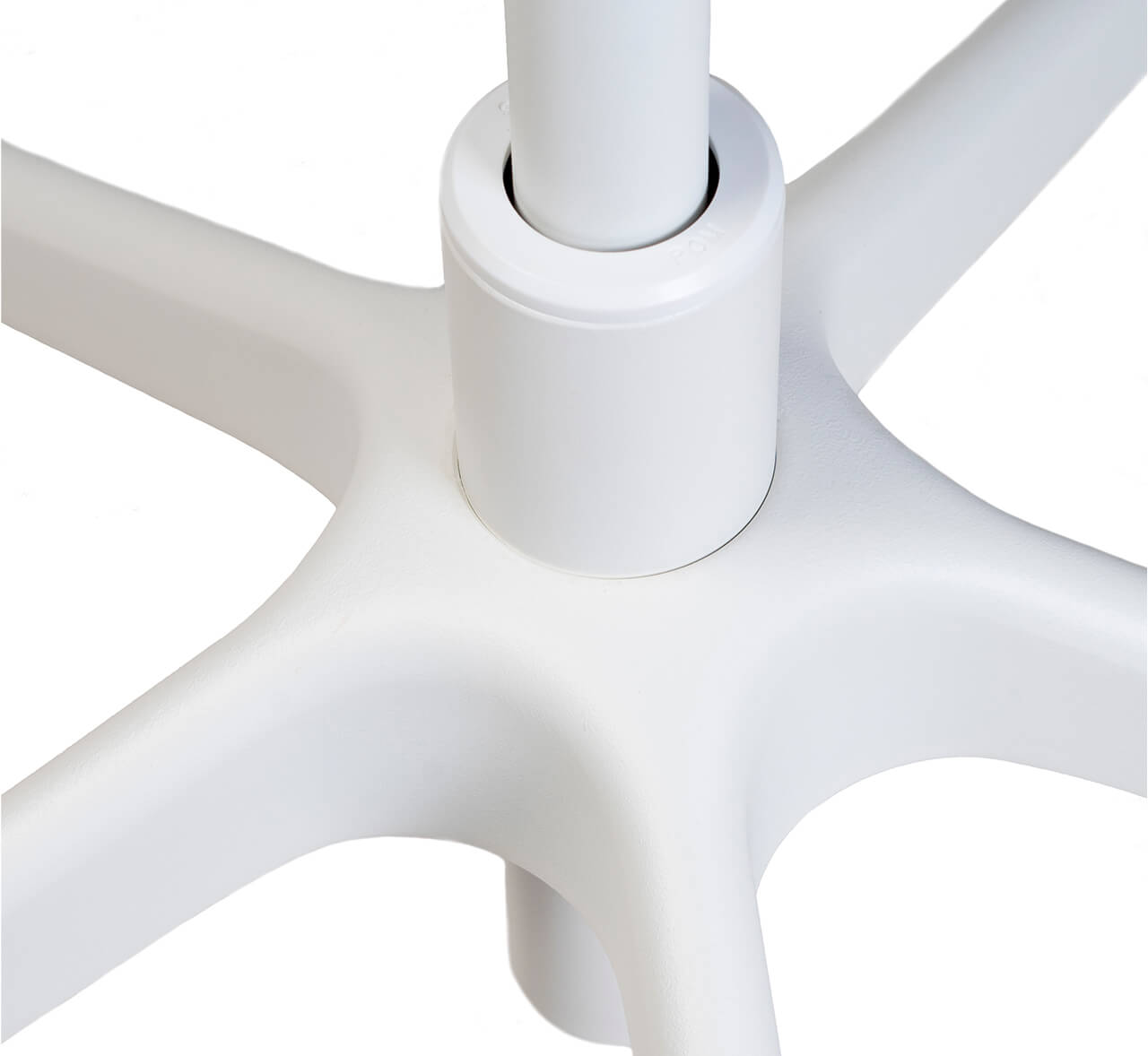 Широкая площадь опоры и пять лучей делают каркас устойчивым и надежным. Каркас выполнен из алюминия, что придает ему особую прочность, и в тоже время легкость. Покрыт порошковой краской, устойчивой к механическим повреждениям. Колеса выполнены из полипропилена и имеют резиновую основу, которая отличается устойчивой упругостью и выдерживает продолжительные нагрузки.