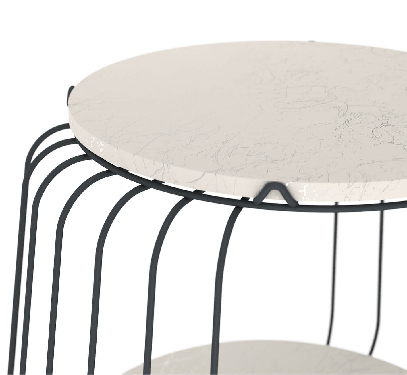 Верхняя и нижняя столешницы из МДФ толщиной 16мм, отличаются повышенной жесткостью и устойчивостью к окружающим воздействиям. Каркас столика выполнен из металлического прутка и окрашен порошковой краской, устойчивой к механическому воздействию.