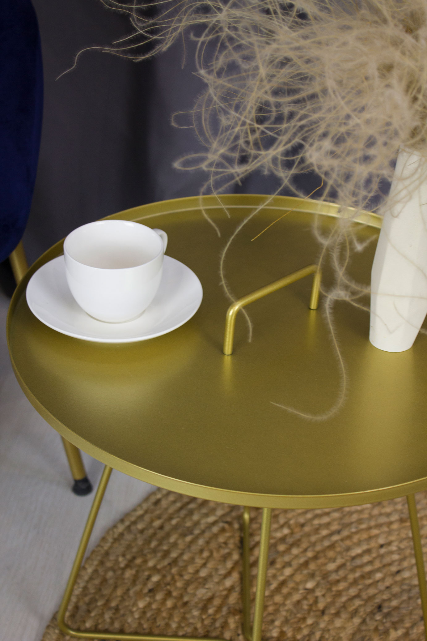 Металлический каркас и столешница окрашены порошковой краской, устойчивой к механическому воздействию. Выполнен из прутка 8 мм и металлического листа толщиной 1 мм. Диаметр столешницы 450 мм.