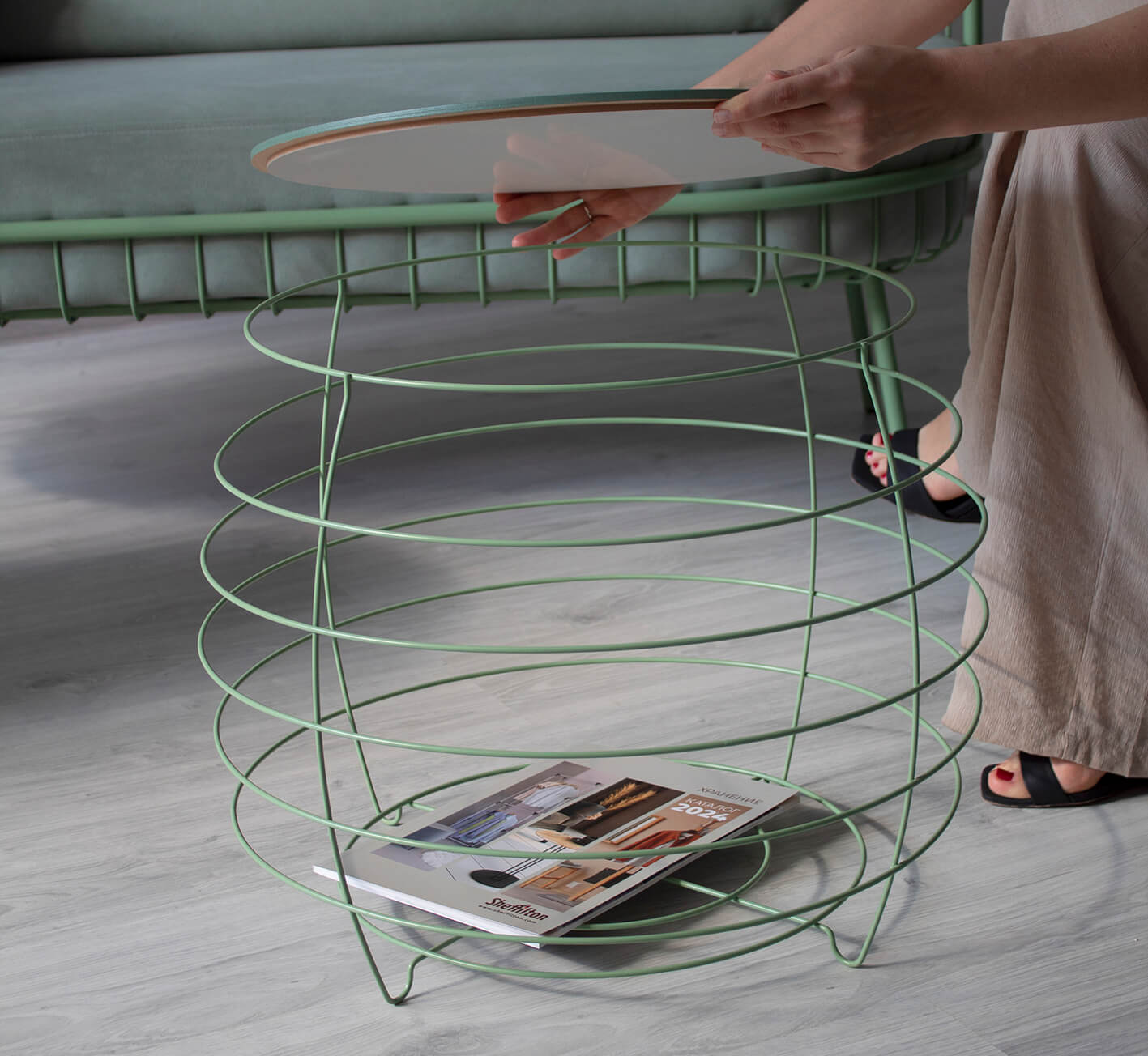 Благодаря своей невысокой высоте, столик легко помещается рядом с диваном или креслом, обеспечивая удобство использования. Столик станет элементом системы хранения вещей. Можете положить в него книги, журналы, подушки, плед и многое другое.
