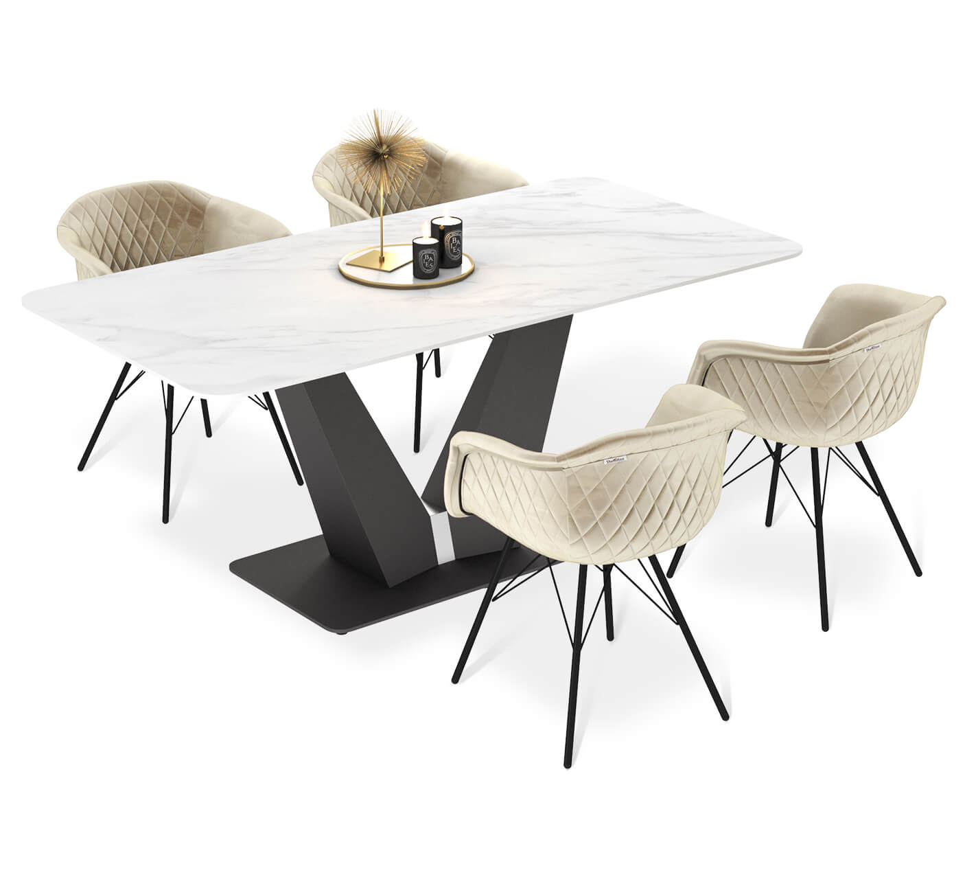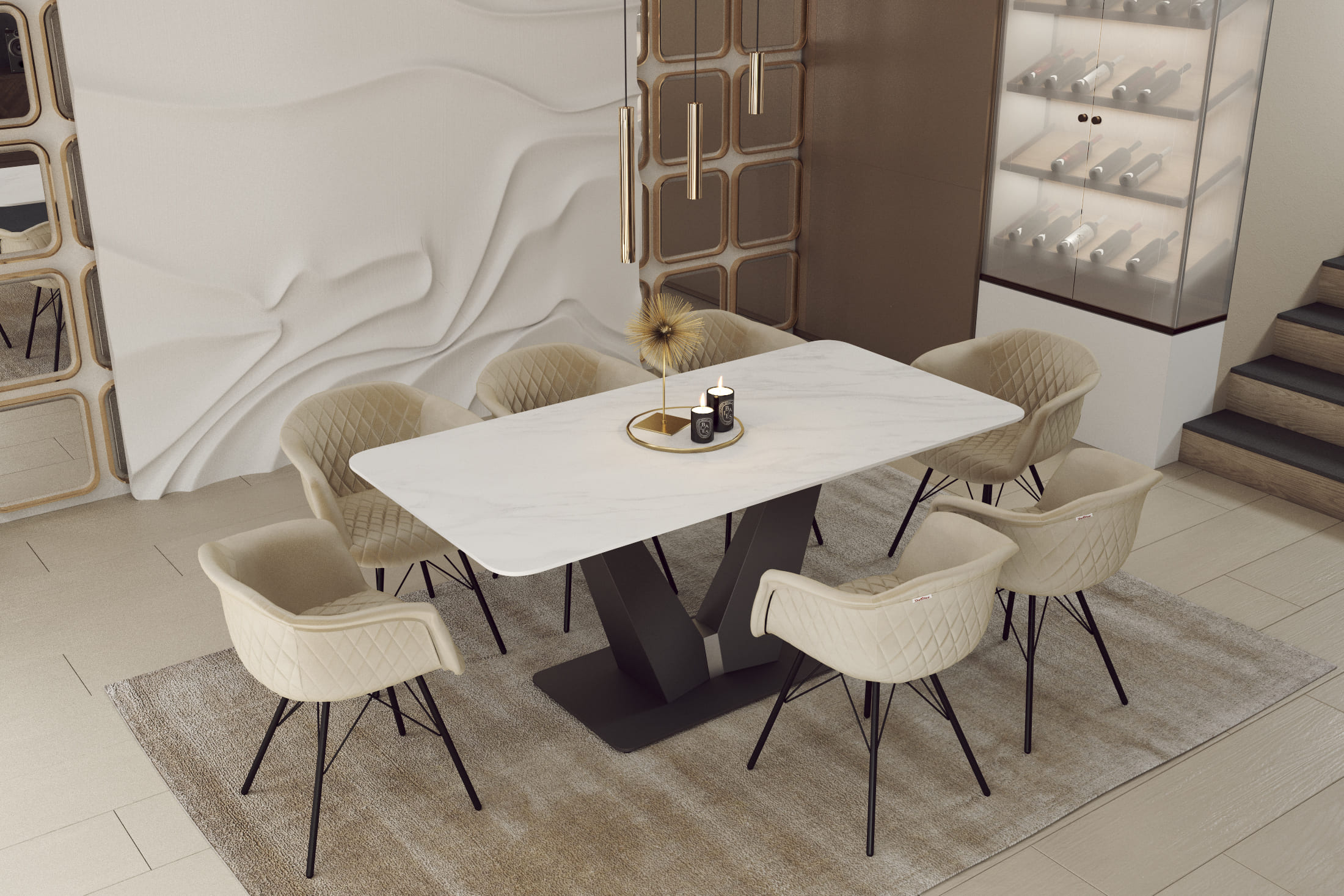 Стулья, в свою очередь, прекрасно дополняют обеденную группу и делают её визуально воздушной за счёт своего практичного и современного дизайна.