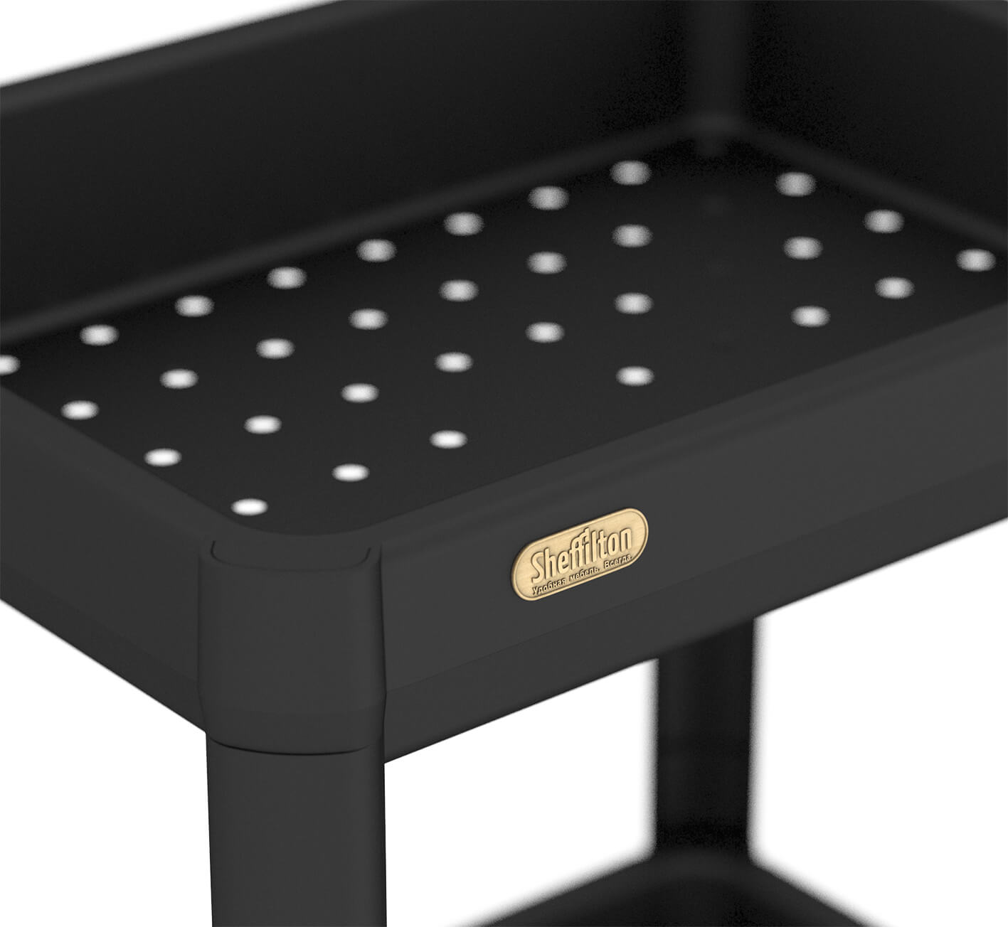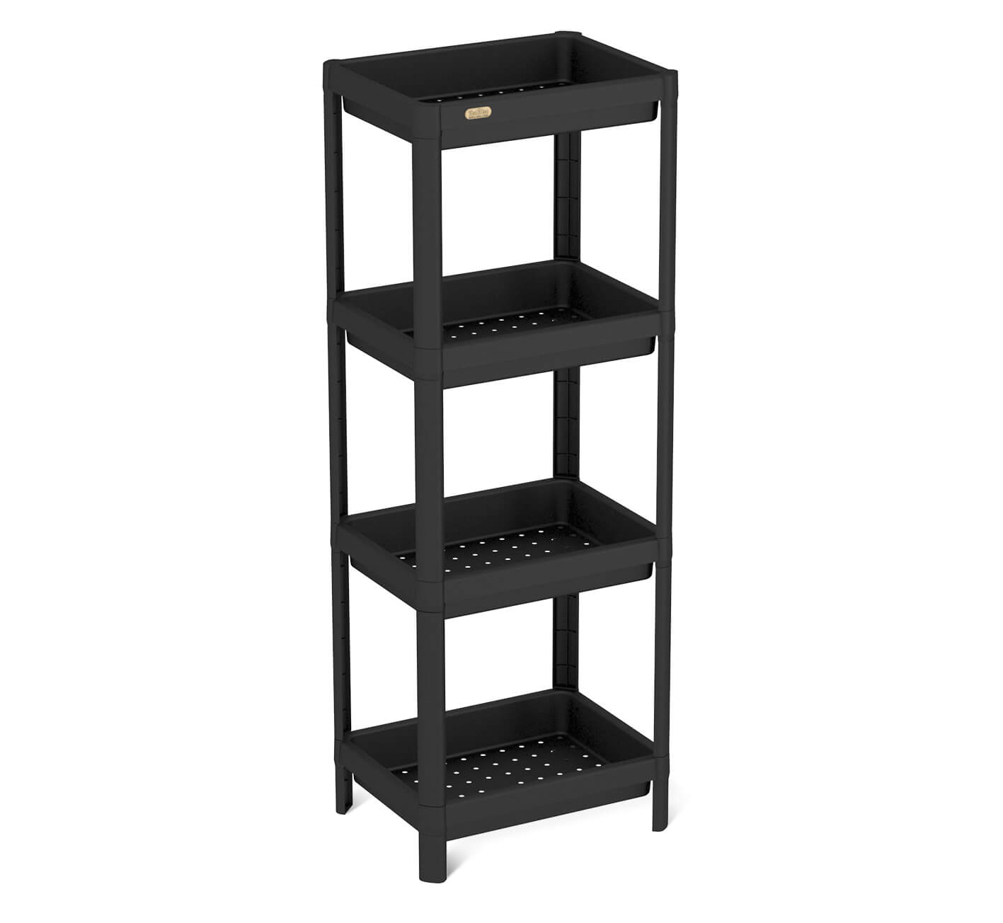 Этот стеллаж оснащён четырьмя полками с бортиками высотой 6 см , которые надежно защищают ваши вещи от падения. На дне каждой полки имеются отверстия, благодаря которым влага и вода не будут накапливаться.