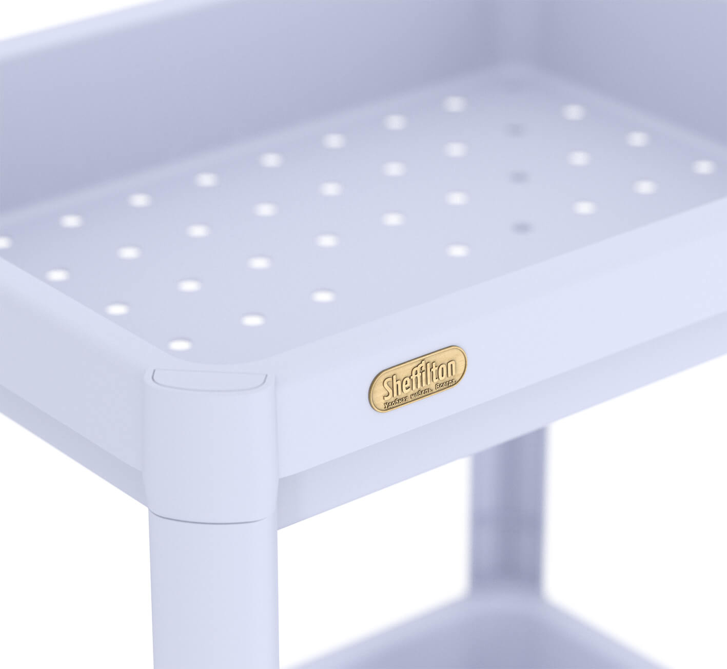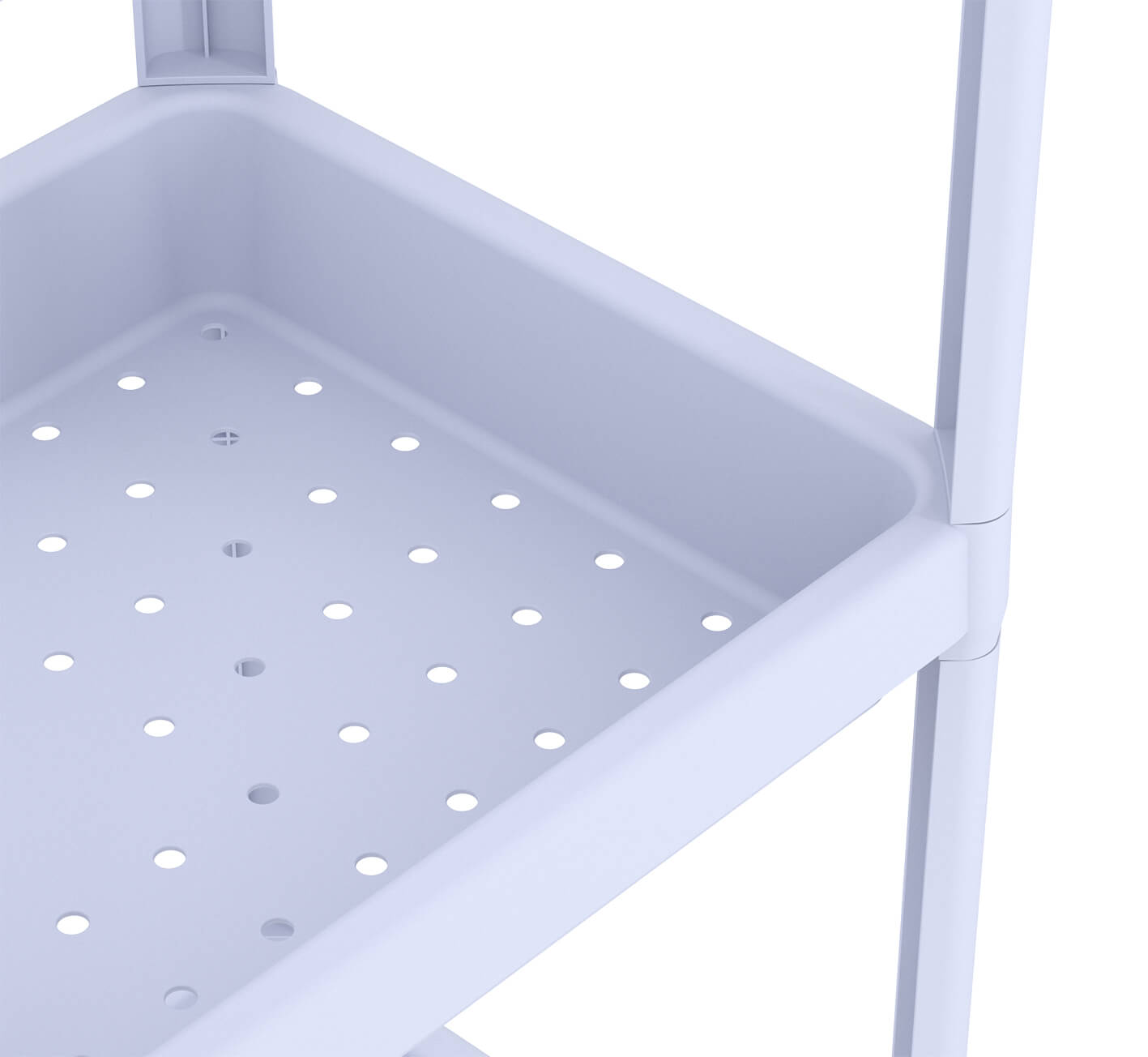 Этот стеллаж оснащён тремя полками с бортиками высотой 6 см , которые надежно защищают ваши вещи от падения. На дне каждой полки имеются отверстия, благодаря которым влага и вода не будут накапливаться.