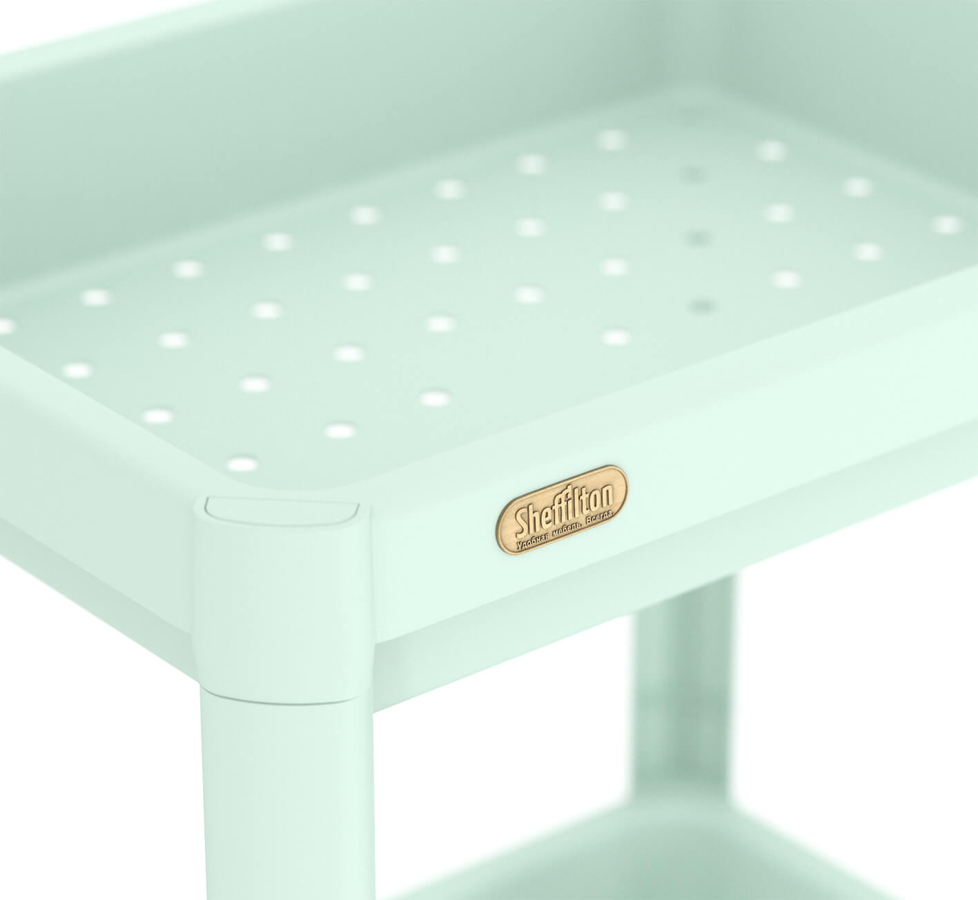 Стеллаж выполнен из полипропилена с армирующими добавками толщина пластика составляет 2,5 мм, что обеспечивает высокую жесткость и надежность конструкции. Благодаря этому, каждая полка выдерживает 6 кг.  Изделие устойчиво к ударам, воздействиям окружающей среды,  не боится воды, влаги и солнечных лучей, поэтому этажерку можно использовать в любых условиях.