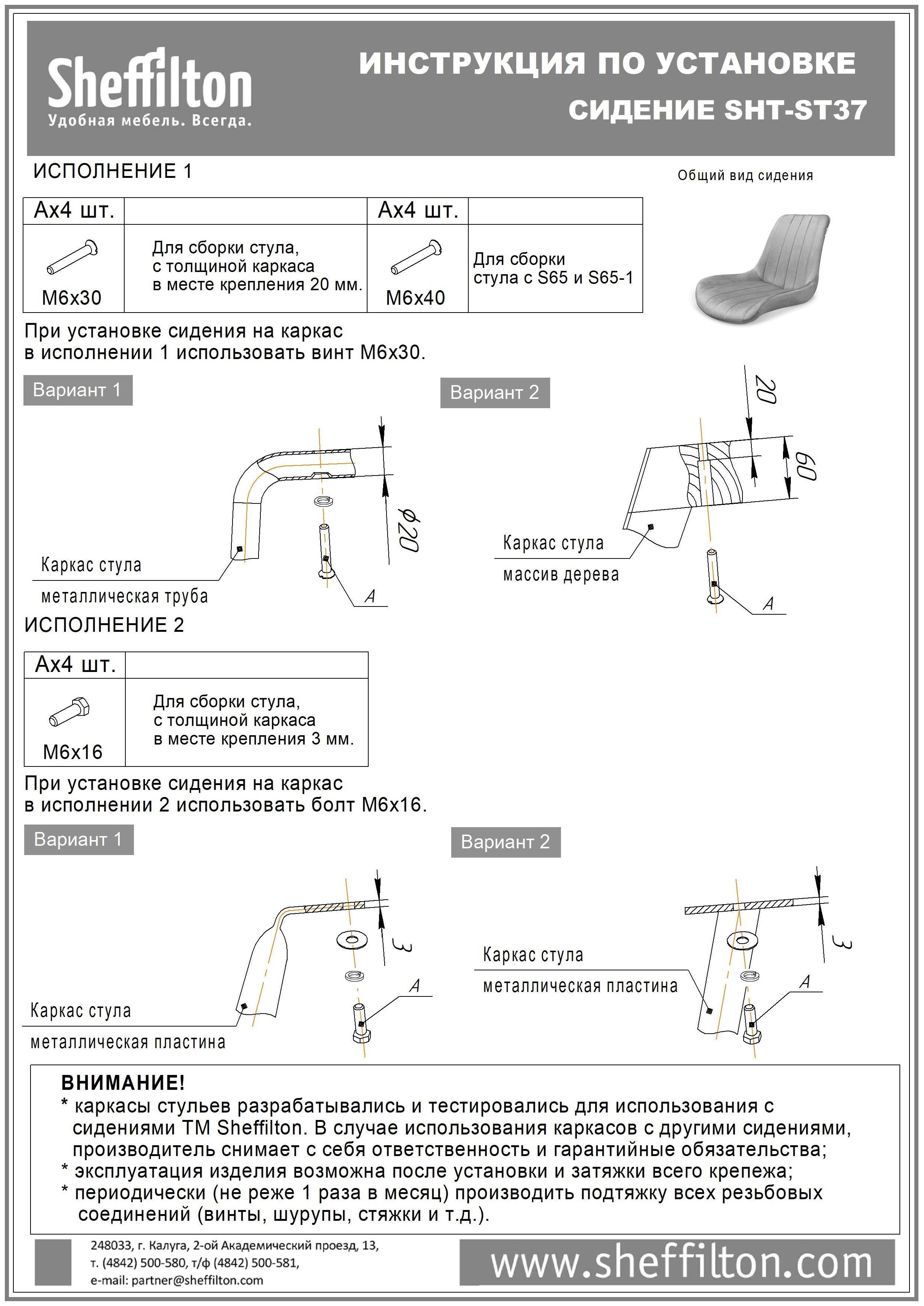 ВНИМАНИЕ! К сидению не подходят следующие модели каркасов Sheffilton SHT-S65, SHT-S65-1, SHT-S129, SHT-S131, SHT-S131-1.