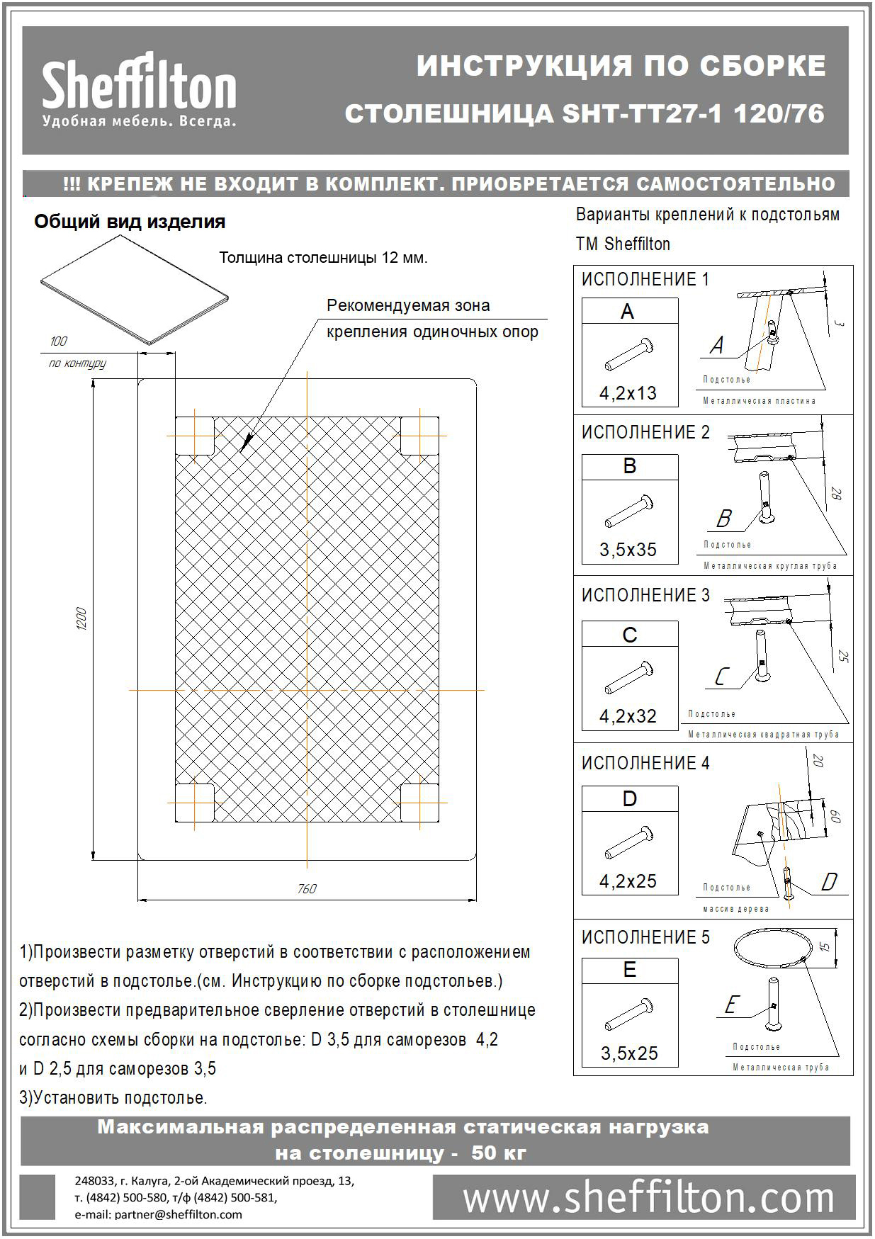 ВНИМАНИЕ! Столешницы не комплектуются крепежом. Пожалуйста, приобретайте его самостоятельно, ориентируясь на схему сборки.