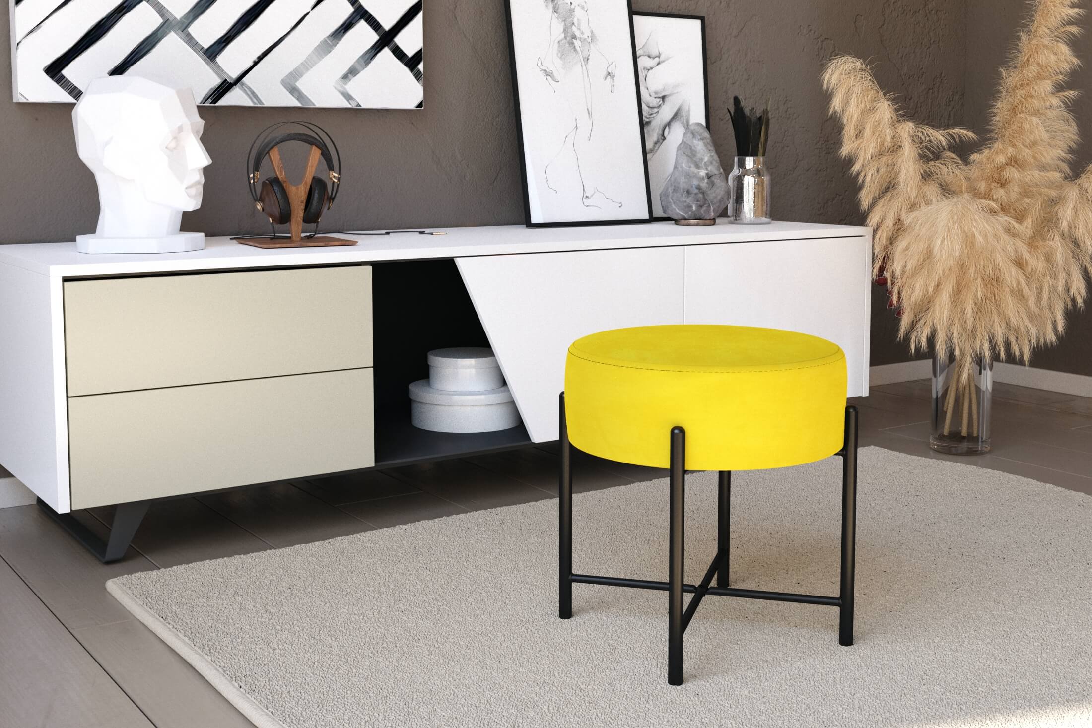 Изящная банкетка цилиндрической формы добавит уюта и разбавит Ваш интерьер. Главное украшение – тонкие ножки из металла. Надежность металла и мягкость ткани прекрасно сочетаются в готовом исполнении банкетки.