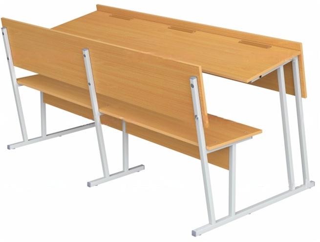 Столешница, спинка и сидение из ЛДСП 16 мм, цвет цвет на выбор. Кромки – ПВХ толщиной 2 мм. Крепление столешницы к металлокаркасу с помощью скрытых металлических футорок – без выступающих на рабочей поверхности болтов. В столешнице установлены лотки для письменных принадлежностей.
