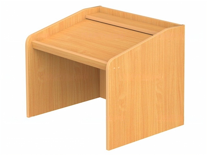 Корпус напольной трибуны-кафедры настольной для выступлений изготовлен из ЛДСП 16 мм, цвет "Бук Бавария". Кромки – ПВХ толщиной 2 мм и 0,4 мм.