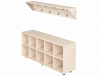 Корпус тумбы и вешалки из ЛДСП толщиной 16 мм, цвет "Бук Бавария". Кромки – ПВХ 2 мм или 0,4 мм. Крючки двойные металлические. Опоры мебельные регулируемые h 44 мм (D 50 мм), предотвращающие повреждение покрытия пола.