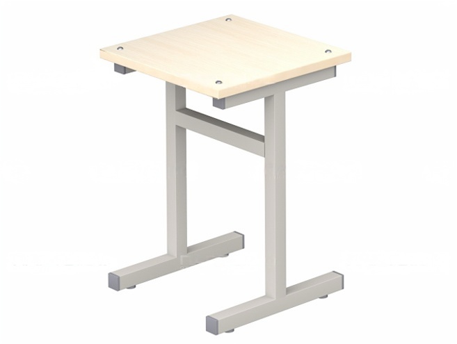 Металлокаркас табурета для обеденного стола школьной столовой изготовлен из квадратной трубы. Окрашен ударопрочной полимерной порошковой краской светло-серого цвета.