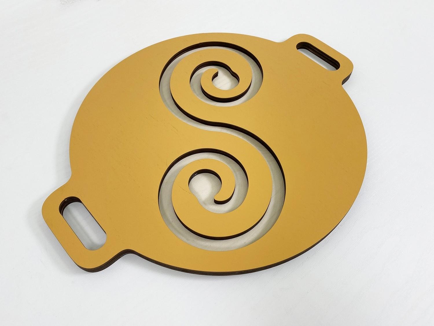 Это игровой тренажёр для развития мозга и координации движений. На круглой доске с двумя ручками по бокам выполнен лабиринт, по которому нужно прокатить шарик с помощью согласованных движений рук.