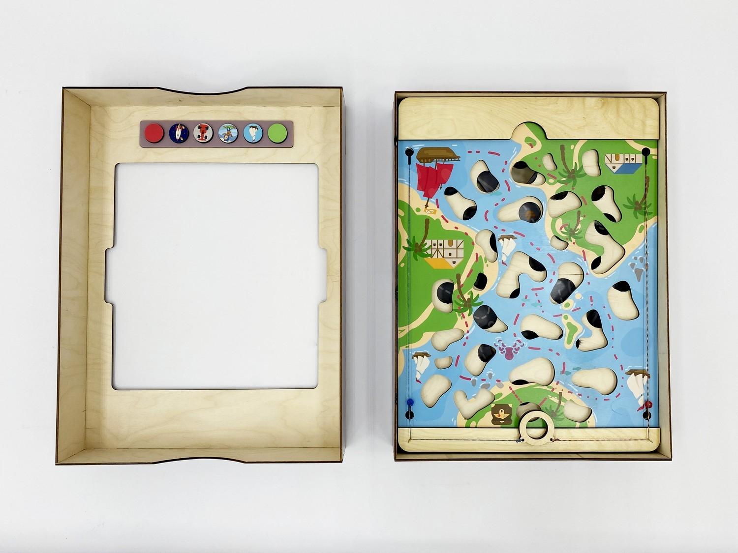 Игра выполнена из экологичной берёзовой фанеры, изображения – цветная УФ-печать. Сверху всё покрыто прозрачным жаростойким лаком Renner на водной основе. Материалы безопасны для детей и имеют все сертификаты соответствия.