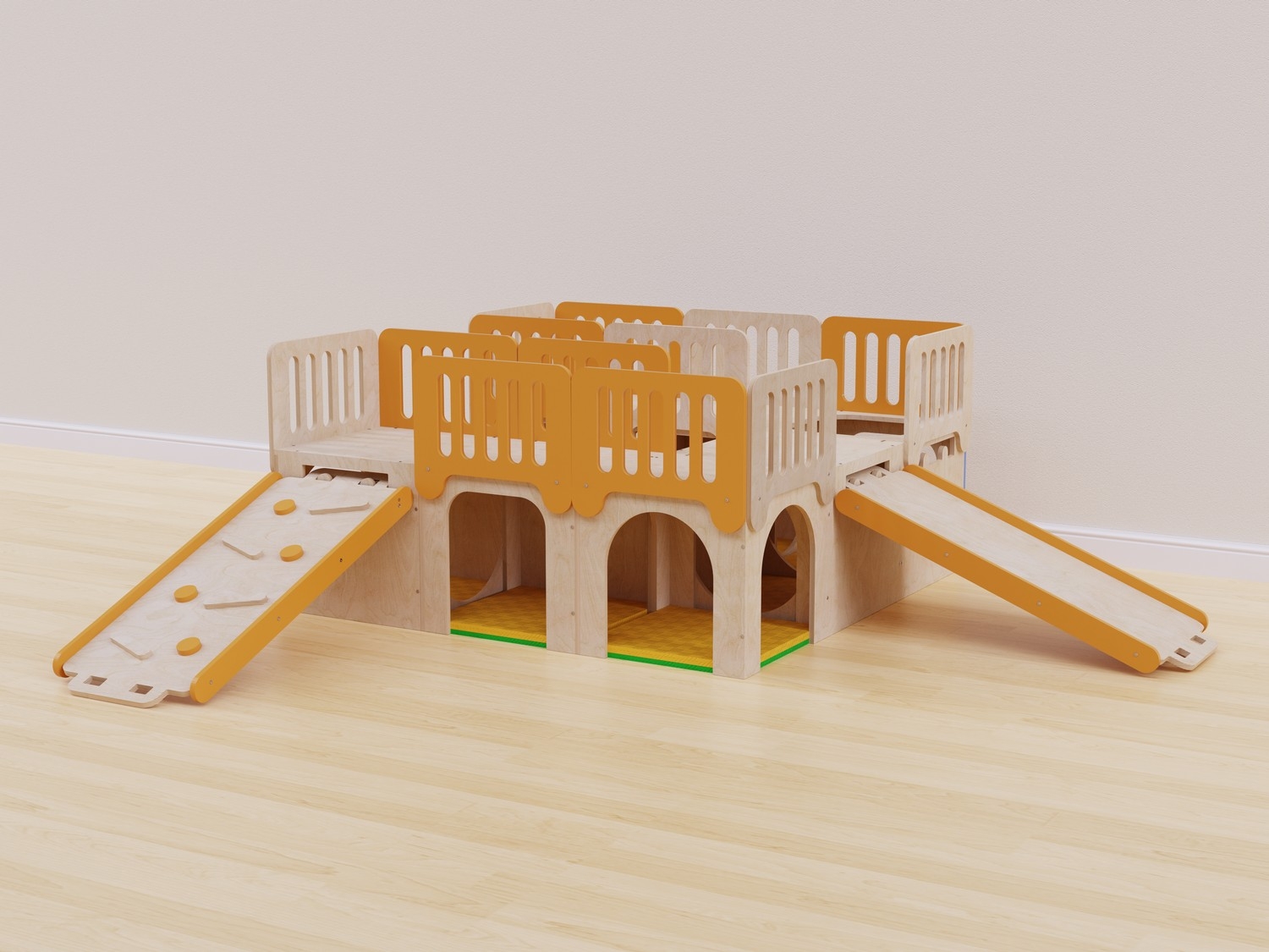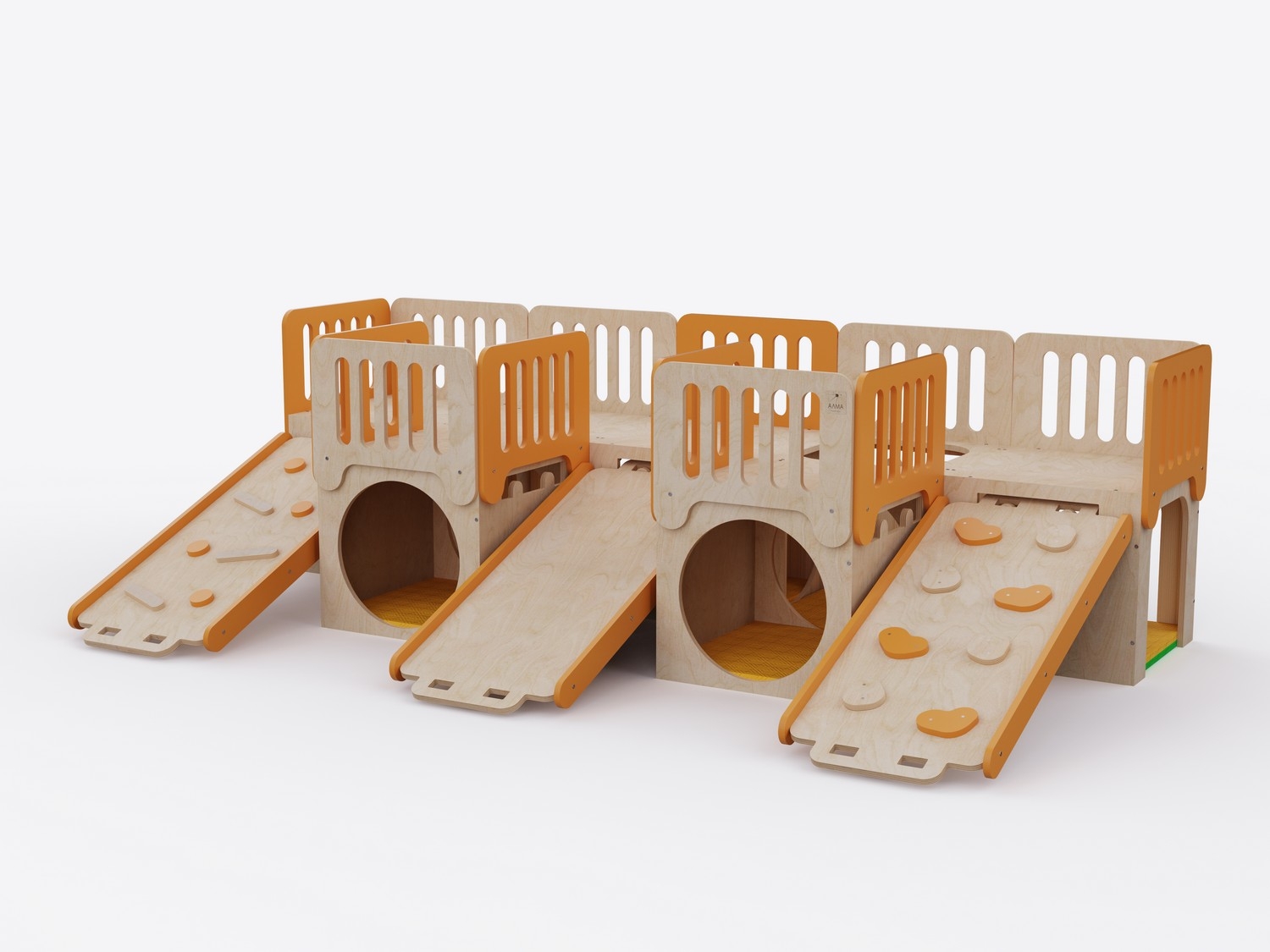 Детский игровой комплекс разработан специалистами компании для размещения в детских садах и общественных пространствах с детской игровой зоной. Активное движение — главное условие нормального развития малышей, а среда, которая стимулирует выполнение сложных скоординированных движений, — лучшее, что может предложить взрослый.