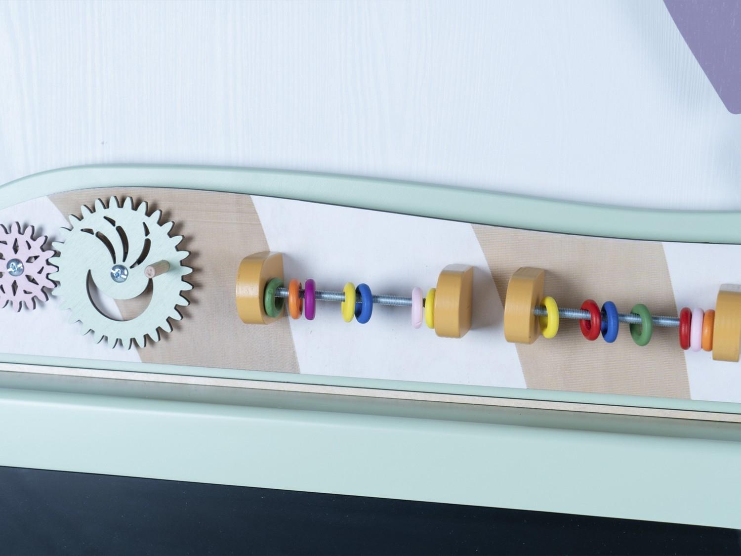 Интерактивный бизиборд «Зебруша» для детских образовательных учреждений, сочетает в себе классические сенсорные элементы Марии Монтессори и современные интерактивные технологии.
