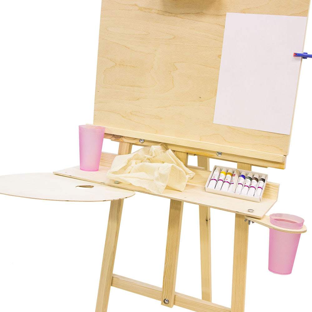 Если вы планируете использовать мольберт в выставочных целях, то эта полочка вам, скорее всего не нужна. Хотя в нашей практике иногда встречаются клиенты, которым такая дополнительная поверхность нужна и для экспозиционных целей. На Полладу можно установить горшочки с растениями, положить визитки или буклеты.