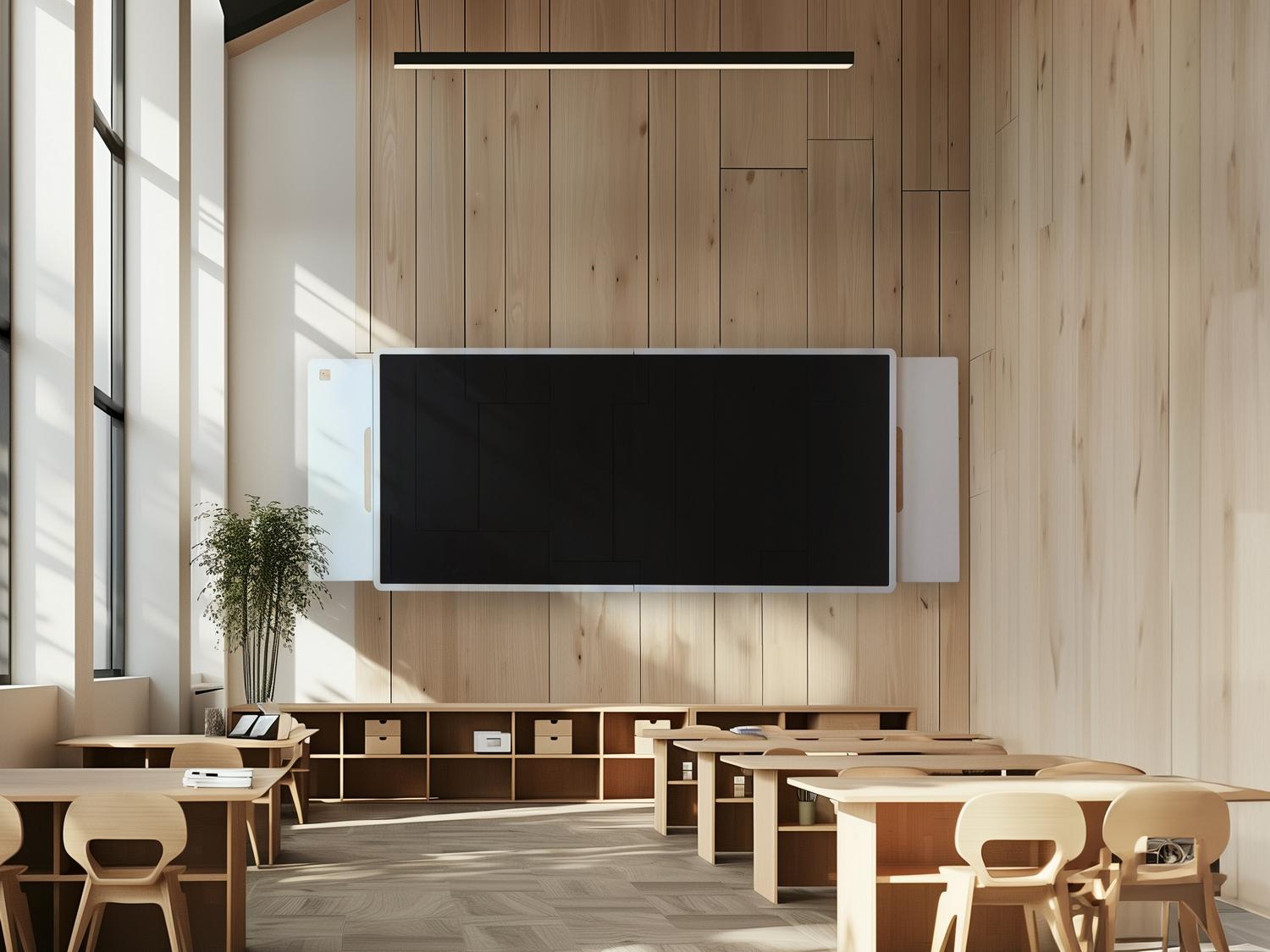 Современная школьная доска, сочетающая пишущую магнитно-меловую поверхность и интерактивный экран со встроенным компьютером. Раздвижная конструкция доски «Фибоначчи» позволяет трансформировать рабочую зону по желанию преподавателя, и совмещать традиционные занятия от руки с инновационными инструментами в образовании. Подходит для оснащения школ, учреждений культуры, детских кружков, развивающих и коррекционных центров для детей.