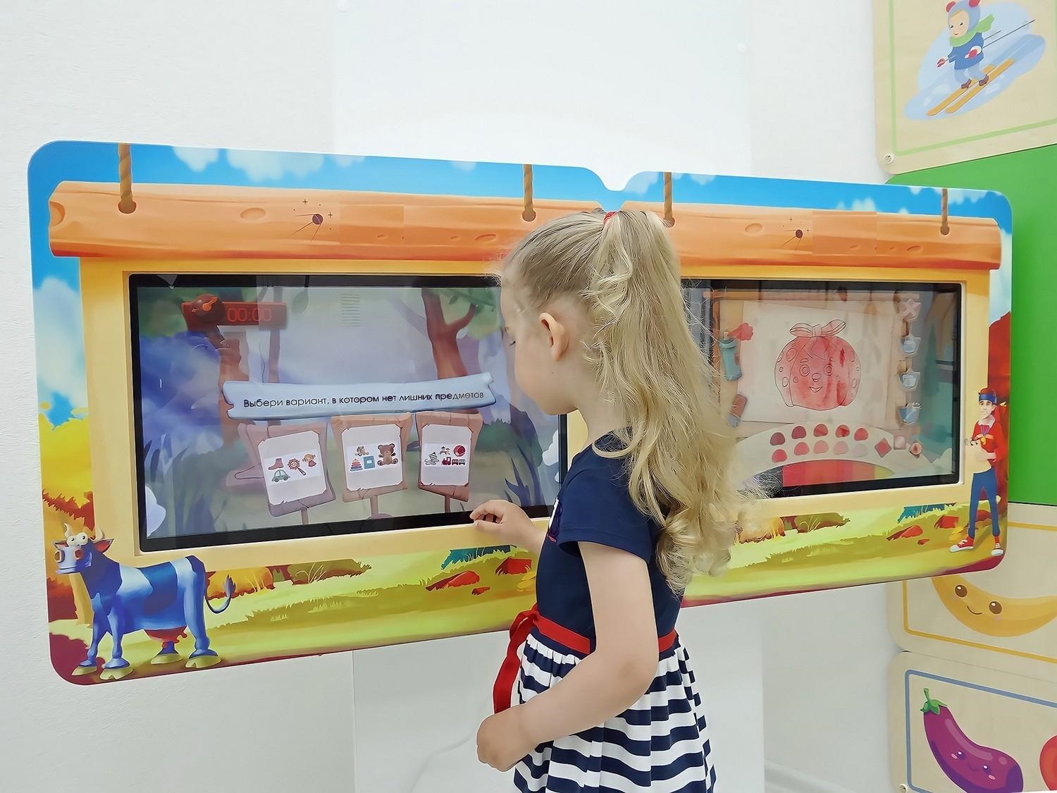 На игровых панелях установлено программное обеспечение «АЛМА Дошкольное образование», включающее более 80 обучающих игр и 110 тестов, направленных на развитие памяти, внимания, логики, на изучение счета и английского языка. Прохождение всех игр гарантирует появление у ребенка базового представления об окружающем его мире.