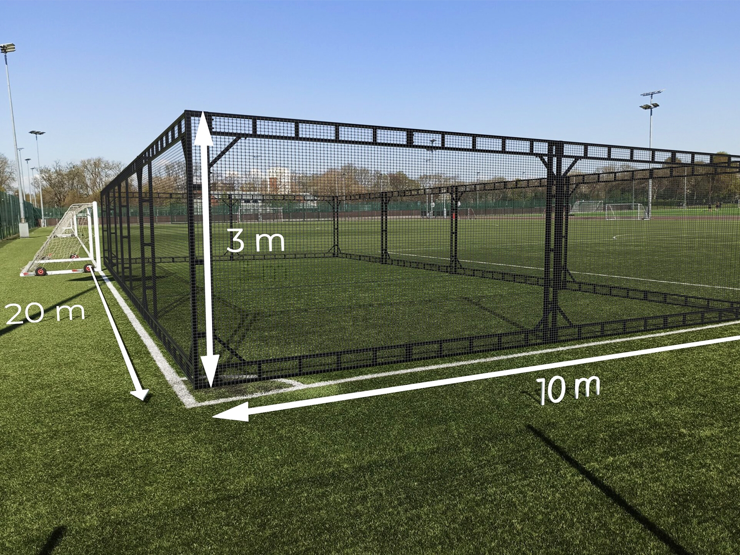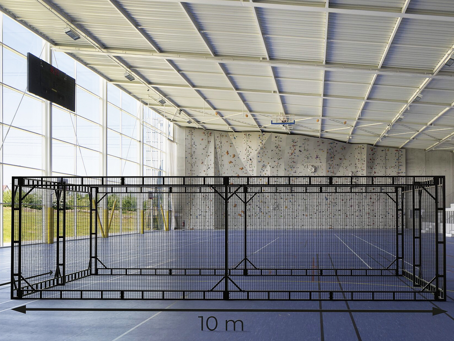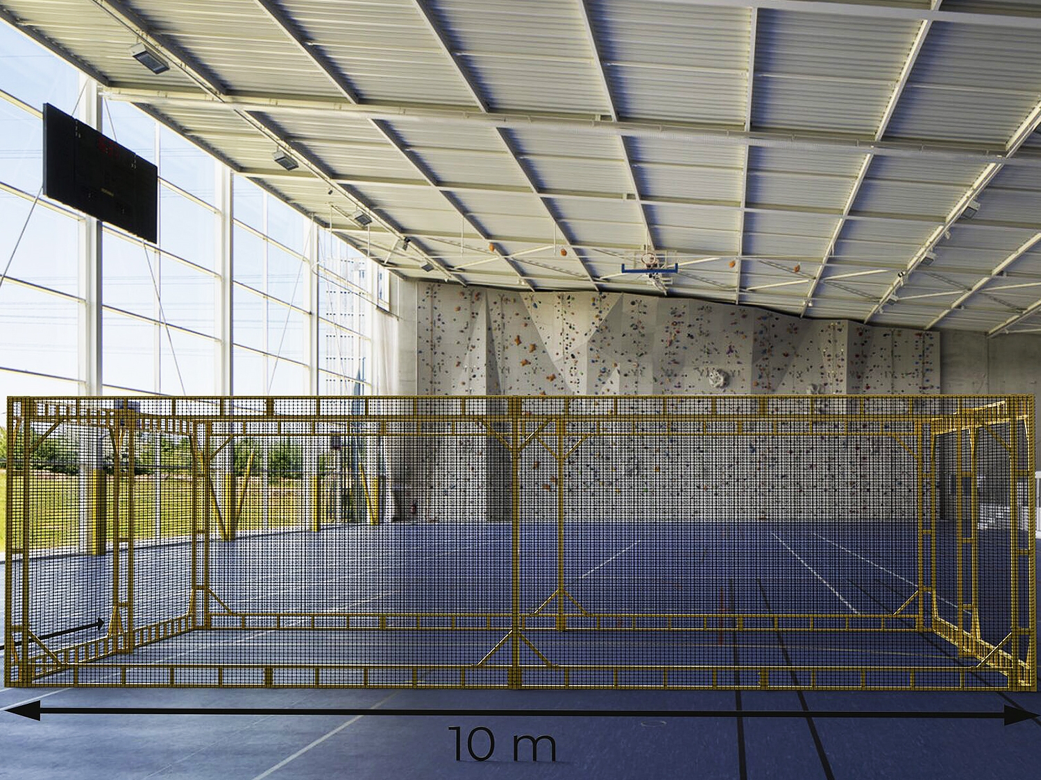 - Стандартный размер конструкции: 10х10х3 м (Возможность сборки по высоте: от 2.5 до 4 м). Стандартная площадь площадки: 100 м2 (Возможность сборки по площади: от 100 м2 до 300 м2)