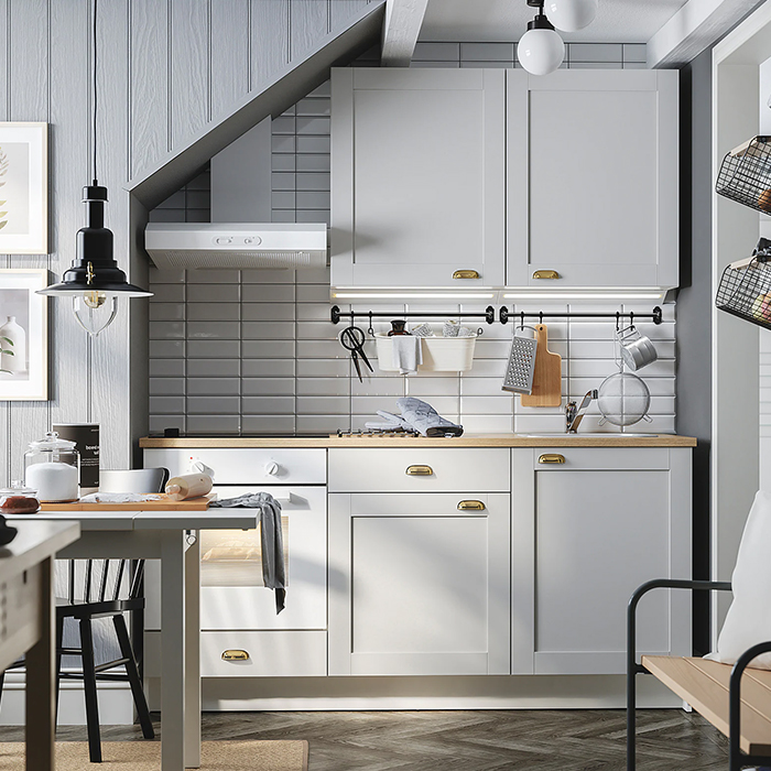 Кухонный гарнитур выполнен в нейтральной цветовой гамме, которая впишется в любой современный интерьер. В нем продумана каждая мелочь: удобные ручки, подъемные механизмы и закругленные края фасадов. Наслаждайтесь каждой минутой, проведенной на новой кухне!