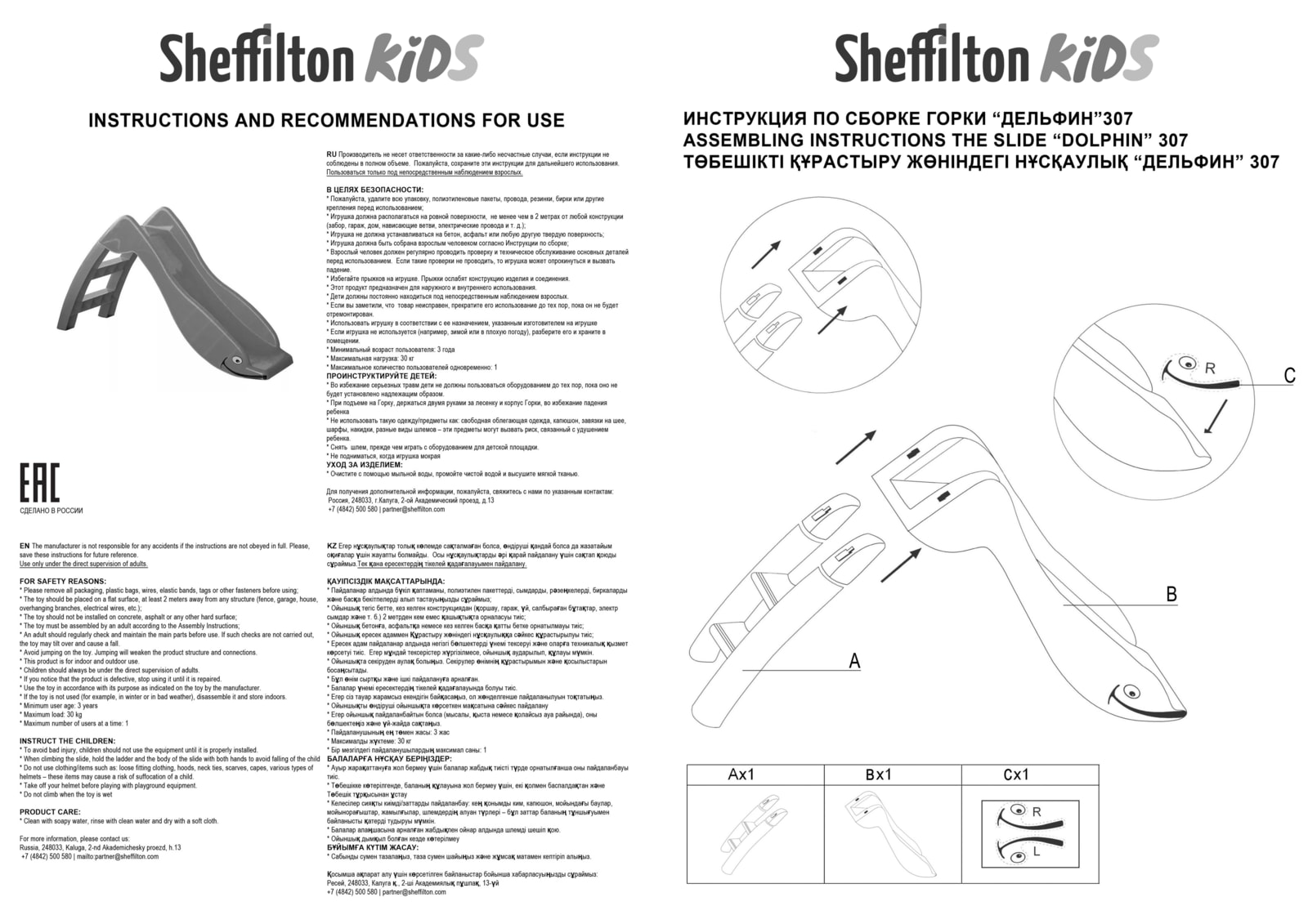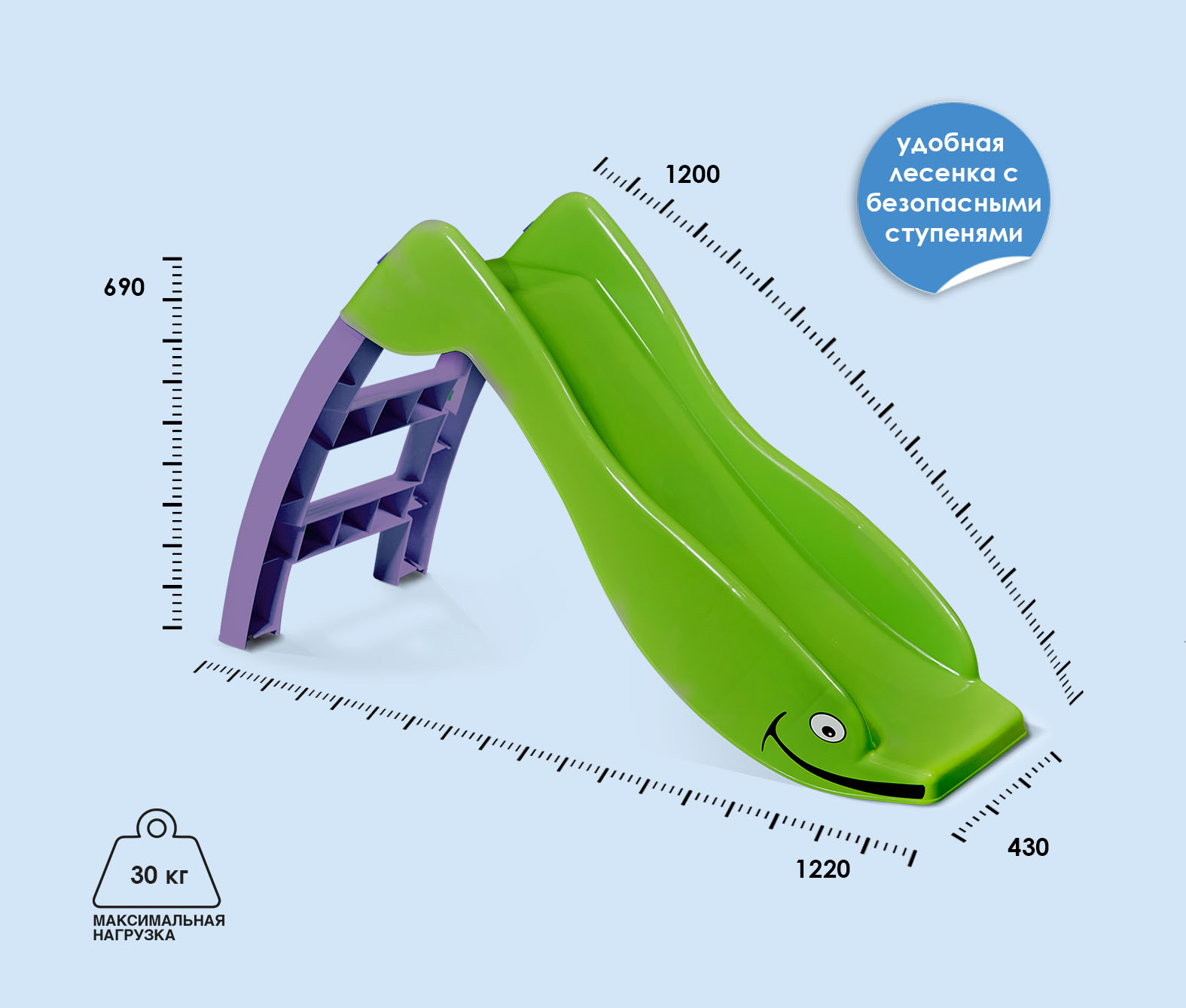 Максимальная статическая нагрузка на горку - 30 кг.
