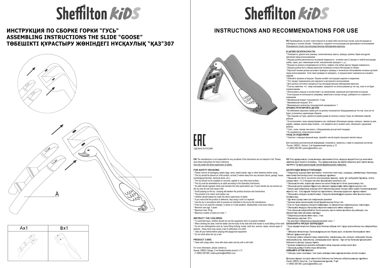 Максимальная статическая нагрузка на горку - 30 кг.