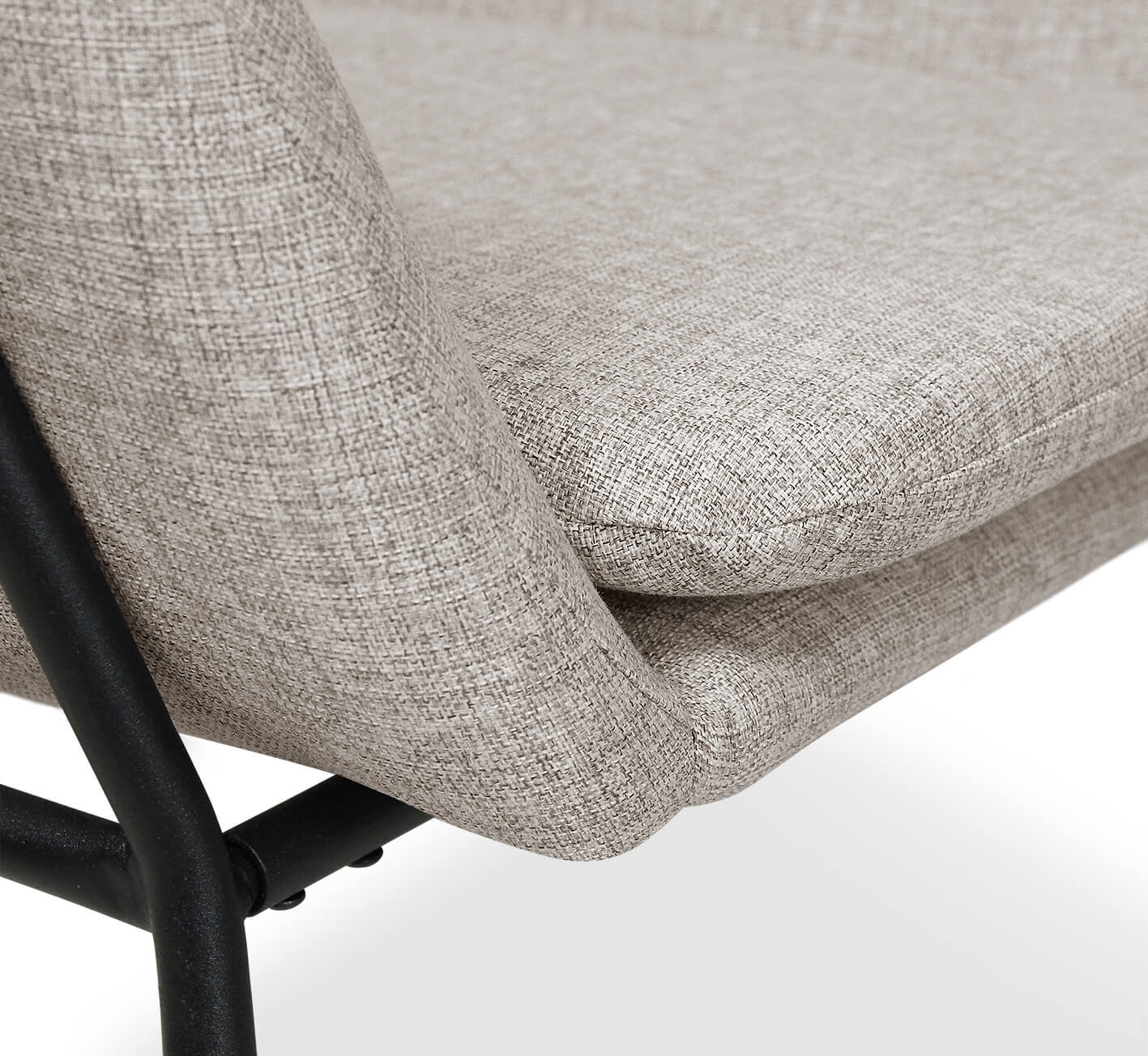 Кресло изготовлено из материалов высокого качества. Каркас выполнен из металла и окрашен порошковой краской, устойчивой к механическому воздействию. Наполнитель – высокоэластичный ППУ, не теряющих своих упругих свойств на протяжении долгих лет. Использование фактурной рогожки в качестве обивки делает модель не только по современному стильной, но и практичной.