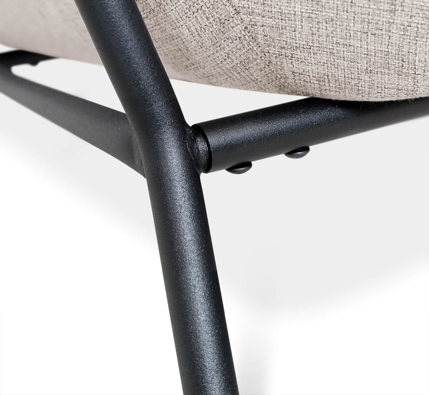 Дизайн модели основан на выдержанной, но контрастной цветовой гамме. Линии металлического каркаса, опоясывающие мягкое сидение, делают дизайн модели особенно стильной. Ножки плавно переходят в подлокотники и спинку, подчеркивая каждый изгиб кресла. Спинка, отклоненная под небольшим углом, и мягкая подушечка на сидении дают еще больший комфорт при использовании.