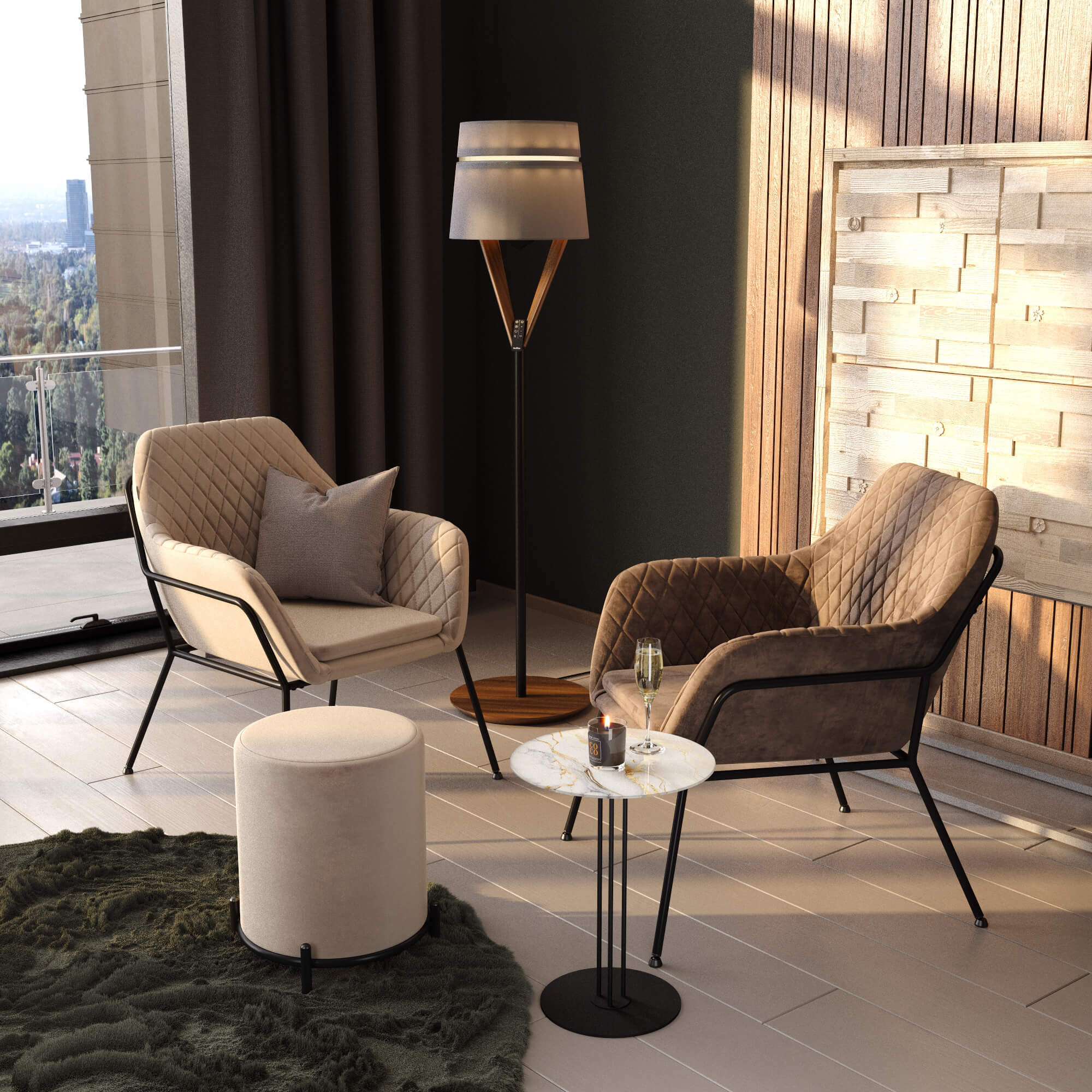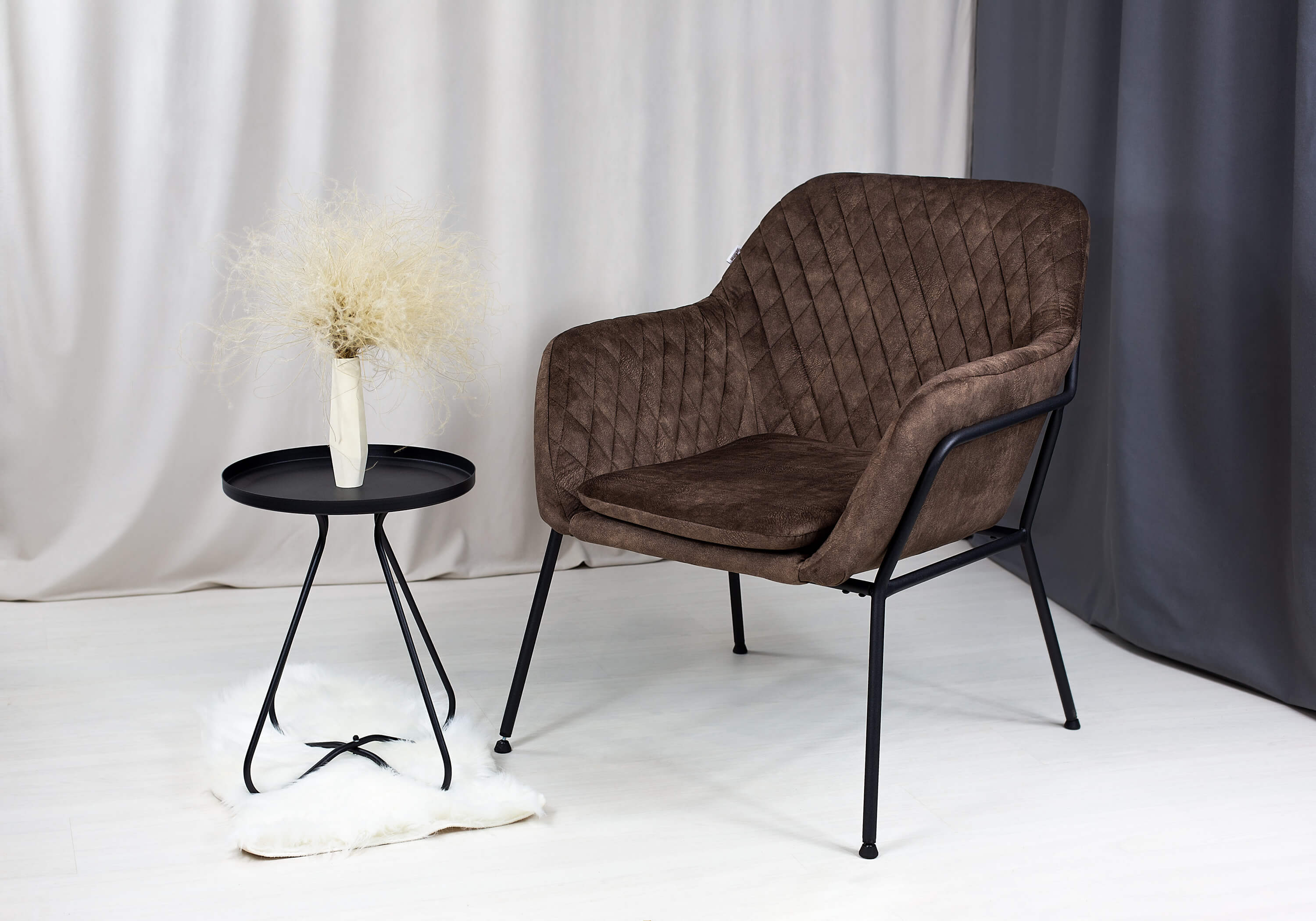 Дизайн модели основан на выдержанной цветовой гамме. Линии металлического каркаса, опоясывающие мягкое сидение, делают дизайн модели особенно стильной. Ножки плавно переходят в подлокотники и спинку, подчеркивая каждый изгиб кресла. Спинка, отклоненная под небольшим углом, и мягкая подушечка на сидении дают еще больший комфорт при использовании.