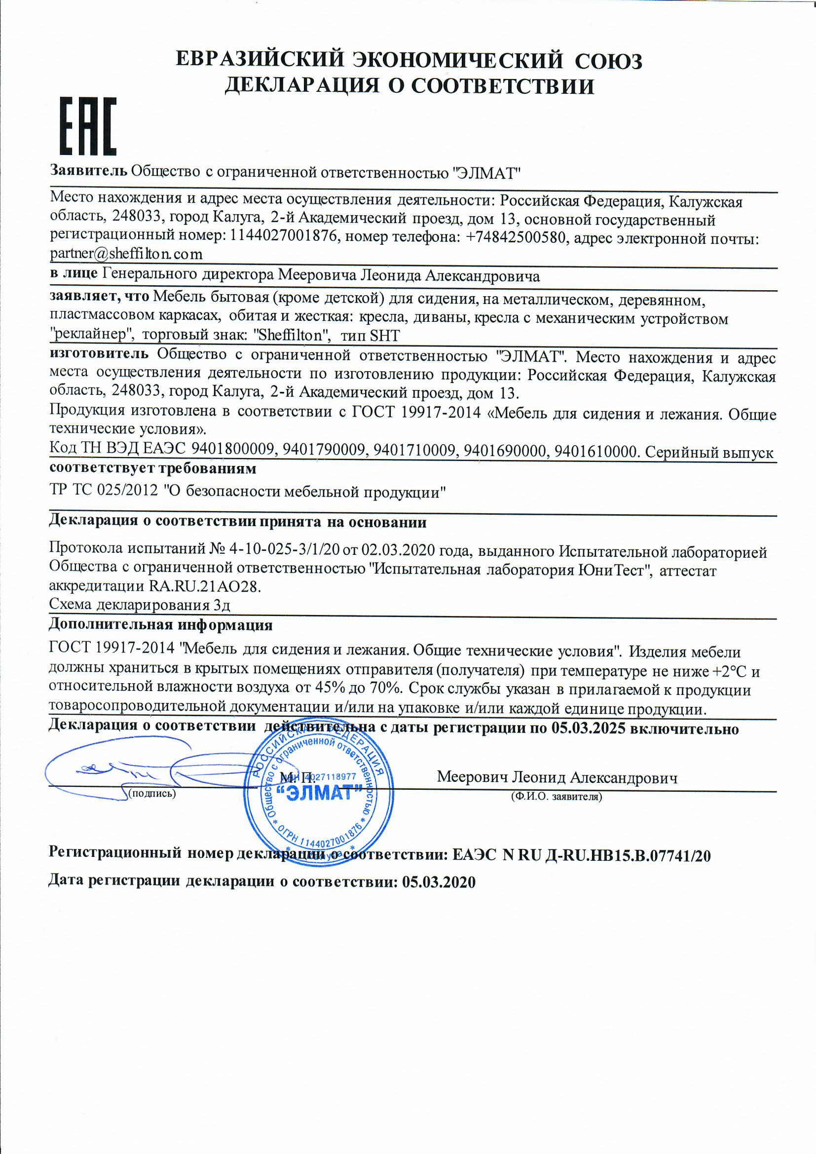 Максимальная статическая нагрузка на кресло – 260 кг.