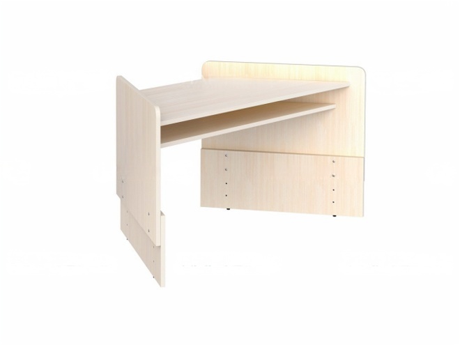 Корпус стола из ЛДСП 16 мм, цвет "Бук Бавария". Стойки с закругленными углами. Кромка столешницы – ПВХ толщиной 2 мм. Крепления без выступающих на рабочей поверхности элементов.