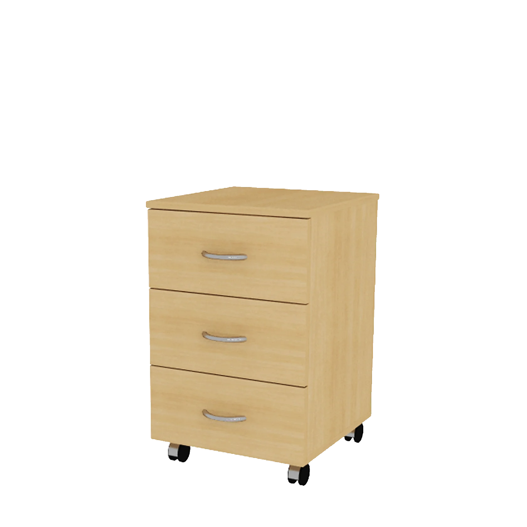 Тумба подкатная, изготовлена из высокопрочного ЛДСП толщиной 16 мм, класс эмиссии Е-1. Торцы облицованы кромкой ПВХ 2мм и 0,4 мм. Тумба имеет три выдвижных ящика. Ящики снабжены мебельными ручками. Длина роликовых направляющих на ящиках 350 мм. Дно ящика изготовлено из ДВП толщиной 3 мм. Тумба собирается на трёхкомпонентных эксцентриковых стяжках и конфирматах, укомплектована мебельными колёсами.