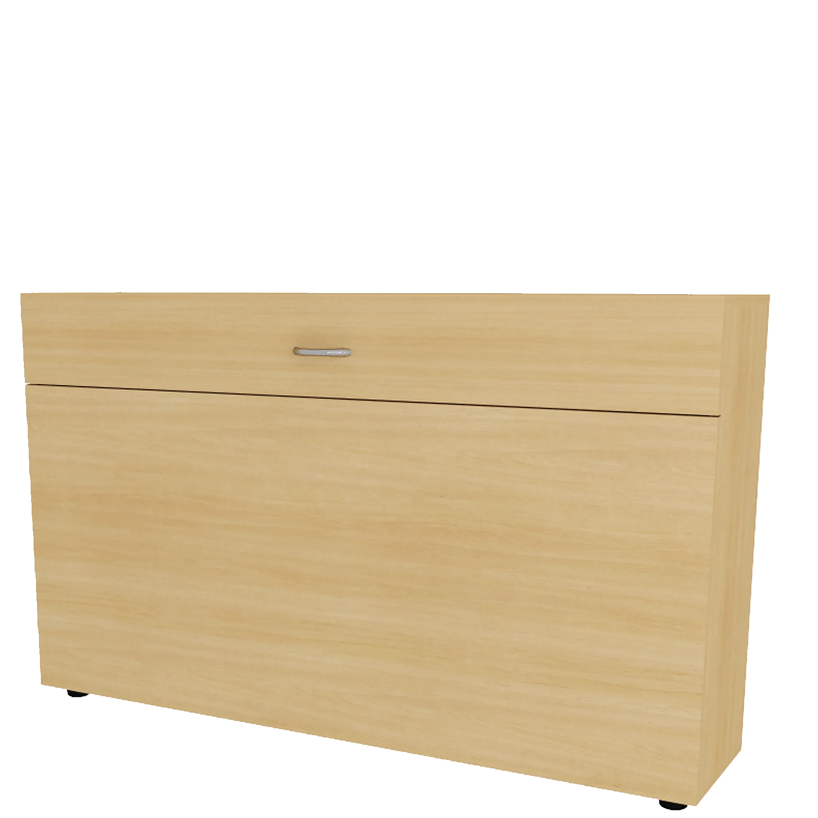 Тумба для карт и плакатов.  Изготовлена из высокопрочного ЛДСП 16 мм, класс эмиссии Е-1. Торцы облицованы кромкой ПВХ 0,4 мм. Тумба имеет переднюю стенку (1260*569мм) и откидную дверь (1260*146мм). На двери установлен ограничитель и одна ручка. Подъем откидной двери тумбочки осуществляется с помощью механизма подъемно откидного KLOK.