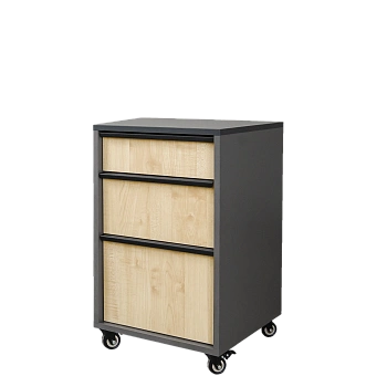 Тумба обеспечивает удобный доступ к документам и канцелярским принадлежностям. Компактный размер тумбы позволяет разместить ее под столом или рядом с ним, освобождая площадь для работы. Опорные металлические поворотные колеса с подшипником позволяют легко и плавно перемещать тумбу. Мягкая резиновая поверхность колеса не оставляет следов на паркете, ламинате или любом натуральном и инженерном деревянном полу, плиточном полу.