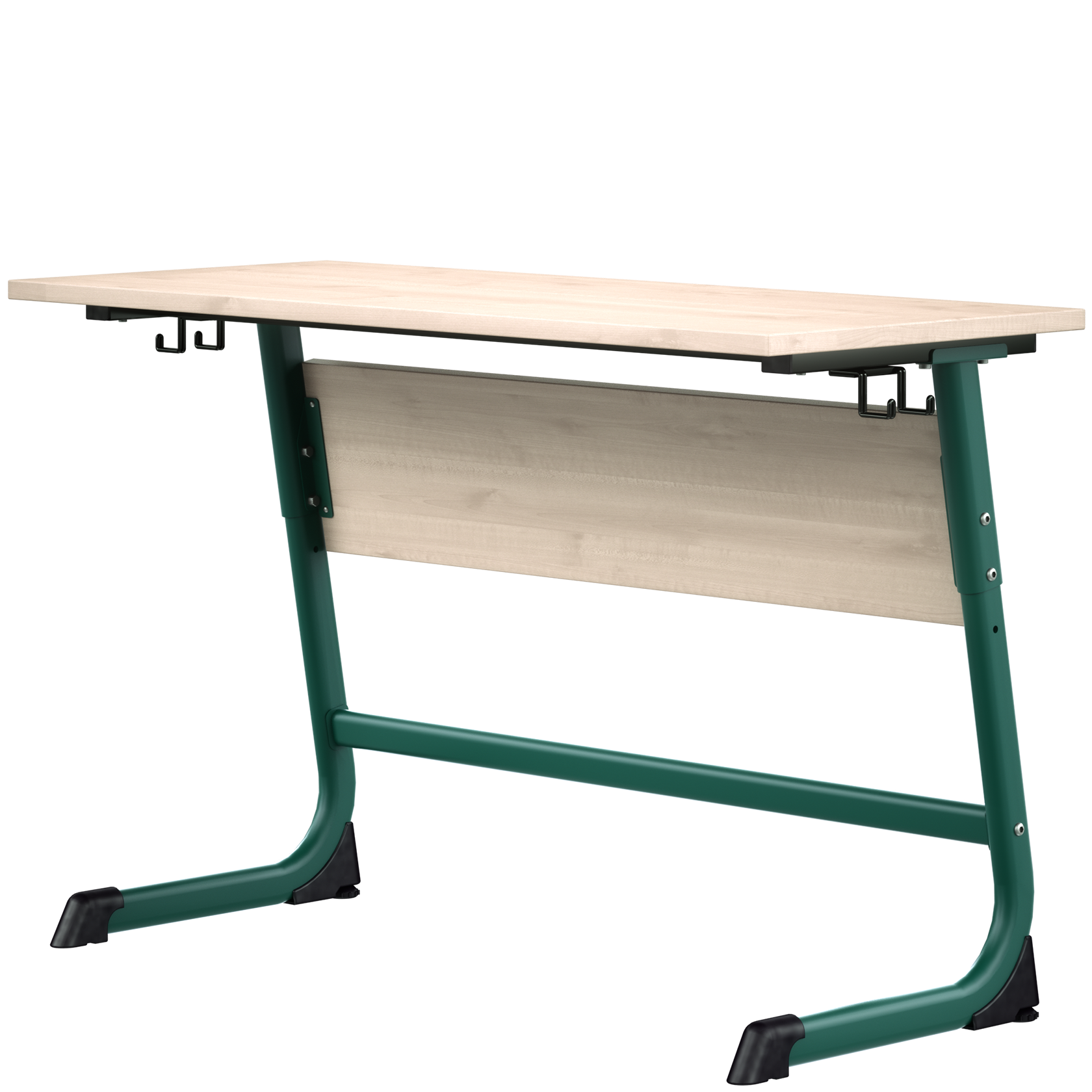Крепкая и долговечная конструкция из плоскоовальной стальной трубы толщиной 2,5 мм обеспечивает исключительную прочность. С-образная стойка делает стол идеальным для малых помещений, так как ножки стола не мешают садиться и вставать из-за стола.  Столешница и экран толщиной 22 мм. Торцы столешницы облицованы кромкой ПВХ толщиной 2 мм. Комплектация лотками для канцелярских принадлежностей как опция. Каркас окрашен качественной и безопасной порошковой краской, прочной к механическим и химическим воздействиям.