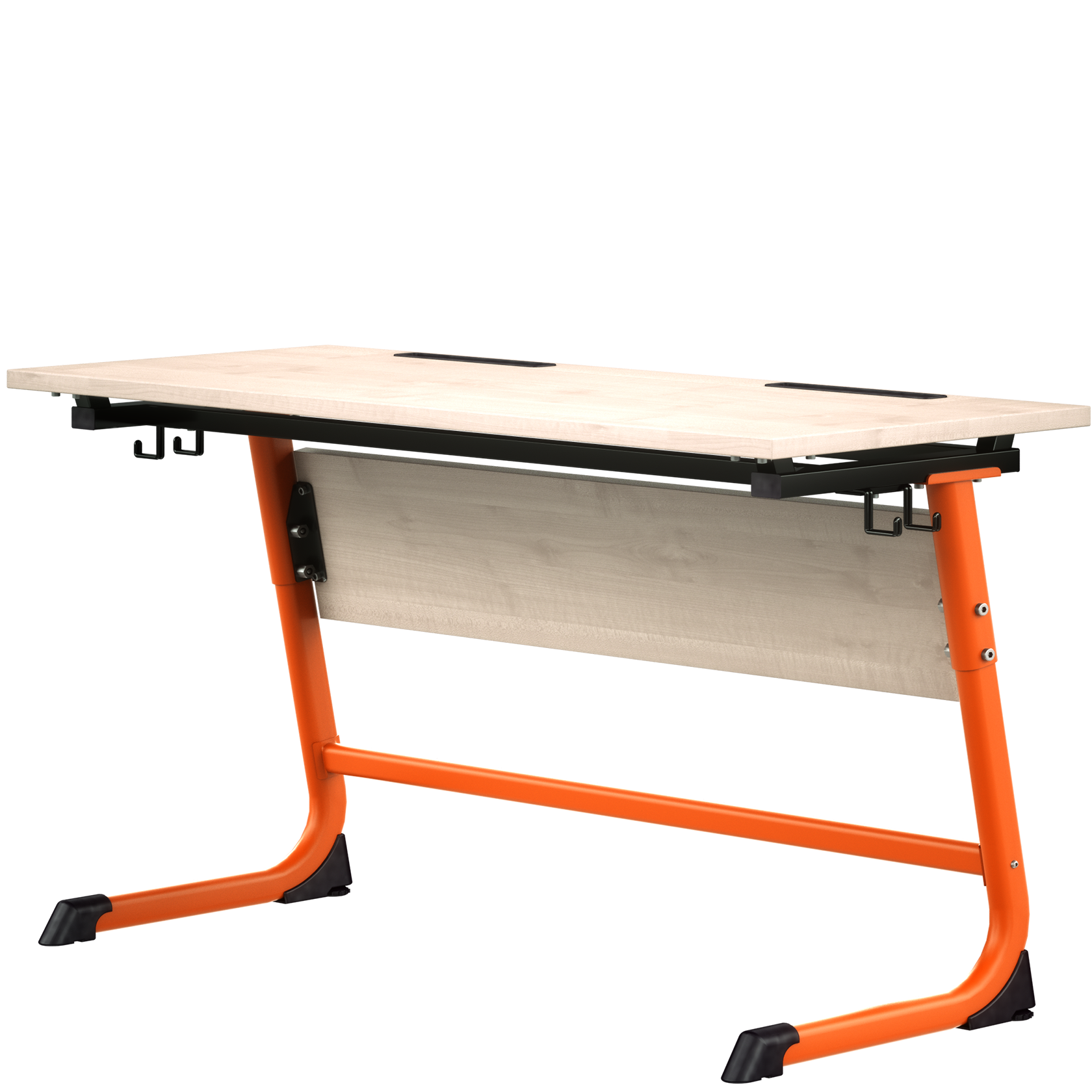 Крепкая и долговечная конструкция из плоскоовальной стальной трубы обеспечивает исключительную прочность. С-образная стойка делает стол идеальным для малых помещений, так как ножки стола не мешают садиться и вставать из-за стола.  Столешница и экран толщиной ЛДСП 22 мм. Торцы столешницы облицованы кромкой ПВХ. Каркас окрашен качественной и безопасной порошковой краской, прочной к механическим и химическим воздействиям. Все столы с наклоном столешницы комплектуются врезными пластиковыми лотками для письменных принадлежностей и оснащаются надежным механизмом "RastoMat", позволяющим дискретно с небольшим шагом (10 положений) изменять угол наклона столешницы от 0 до 35 градусов. Для поддержания правильной осанки детей рекомендуется при чтении устанавливать угол наклона в 25°- 30°, при письме – в 10°-15°
