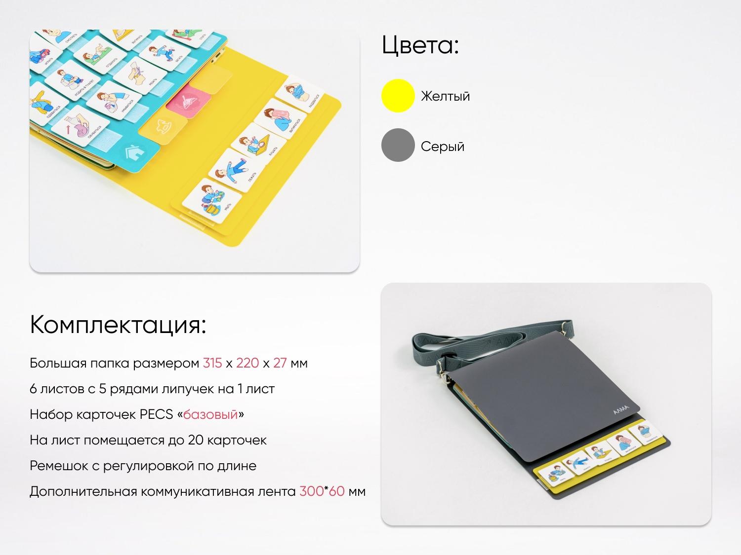 Для использования вместе с коммуникативной книгой PECS/ПЕКС можно дополнительно приобрести расширенный набор карточек.