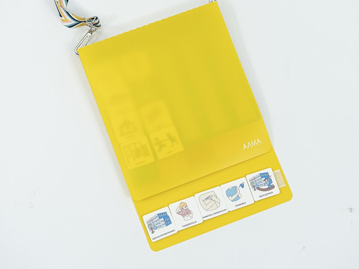 Инструмент для альтернативной/дополнительной коммуникации у детей, имеющих проблемы с речью (в том числе, РАС). Это пластиковая папка на кольцах, куда вкладываются жёсткие листы с рядами ленты-липучки велкро. На ленту приклеиваются карточки PECS/ПЕКС, служащие средством обмена информации между неговорящим ребёнком и взрослым.