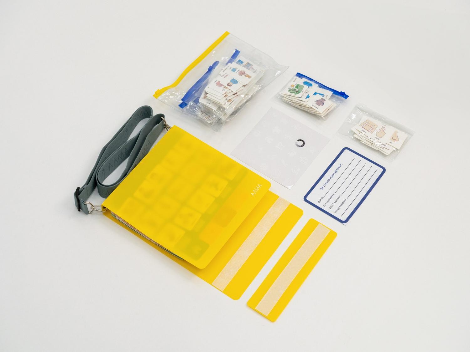 В комплекте есть тематические наклейки на страницы (для быстрого ориентирования) и наклейка-адресник. На задней стороне книги печать 3х символов: «да», «нет», «не знаю» - они позволяют ребёнку быстро сообщить собеседнику краткий ответ.