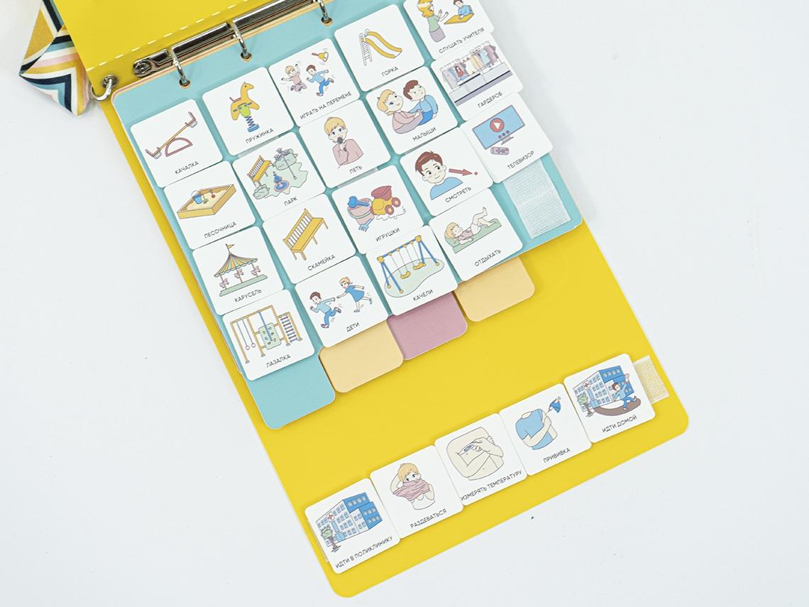 Коммуникативная книга для карточек PECS/ПЕКС подходит не только детям с аутизмом, но и детям с тугоухостью, ЗПР, ДЦП, алалией, тяжёлыми случаями заикания.