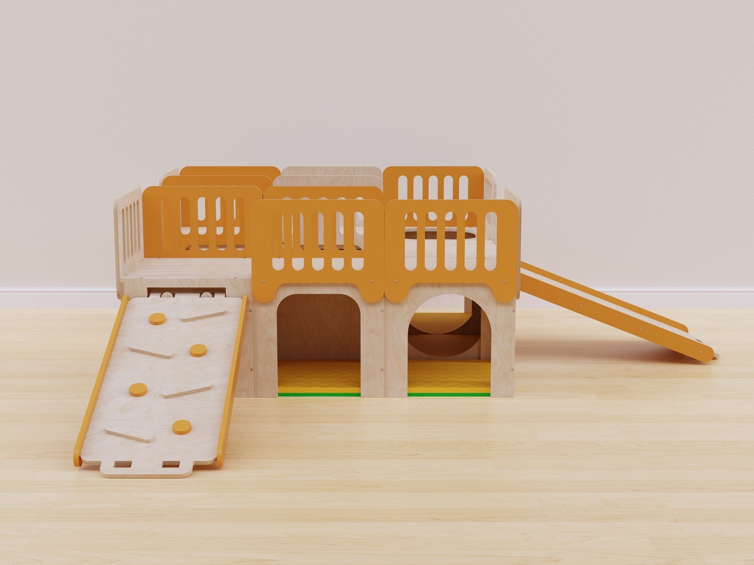 Каждый элемент конструкции соответствует актуальным ГОСТам на детскую мебель, требованиям СанПиН и пожарной безопасности, рекомендациям ФОП ДО по созданию развивающей среды для детей раннего возраста. Гладкие поверхности просты в уходе: достаточно влажной уборки для поддержания высокого уровня гигиены. Универсальный дизайн позволяет установить комплекс в любое пространство.