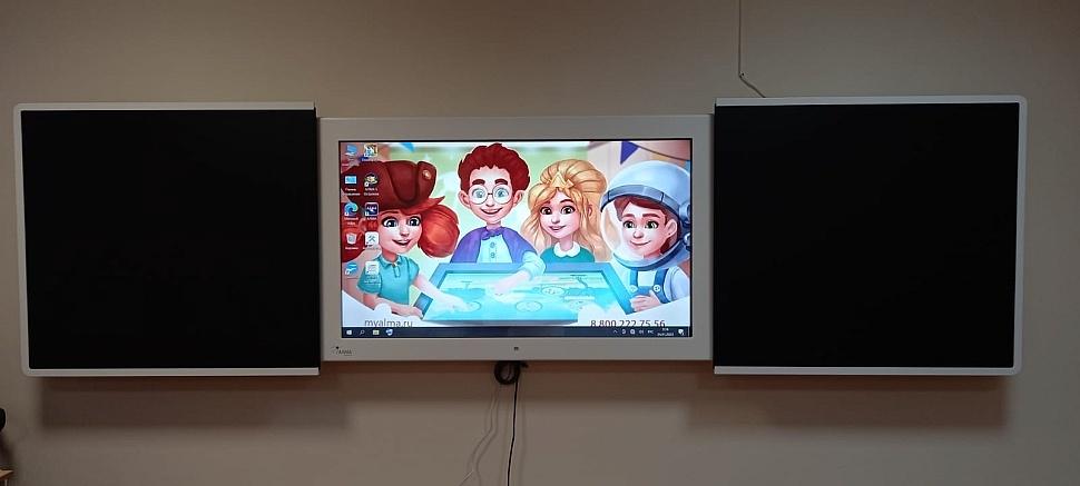 Доски служат для традиционной работы от руки, здесь дети решают примеры, чертят геометрические фигуры и выводят правильное написание слов. С помощью раздвижных механизмов они разъезжаются на две части, открывая сенсорную интерактивную панель больших размеров (65 дюймов), в которую встроены чувствительные multi-touch сенсоры. Эти сенсоры поддерживают функцию двойного написания и способны распознавать и реагировать сразу на 10 касаний к поверхности доски!