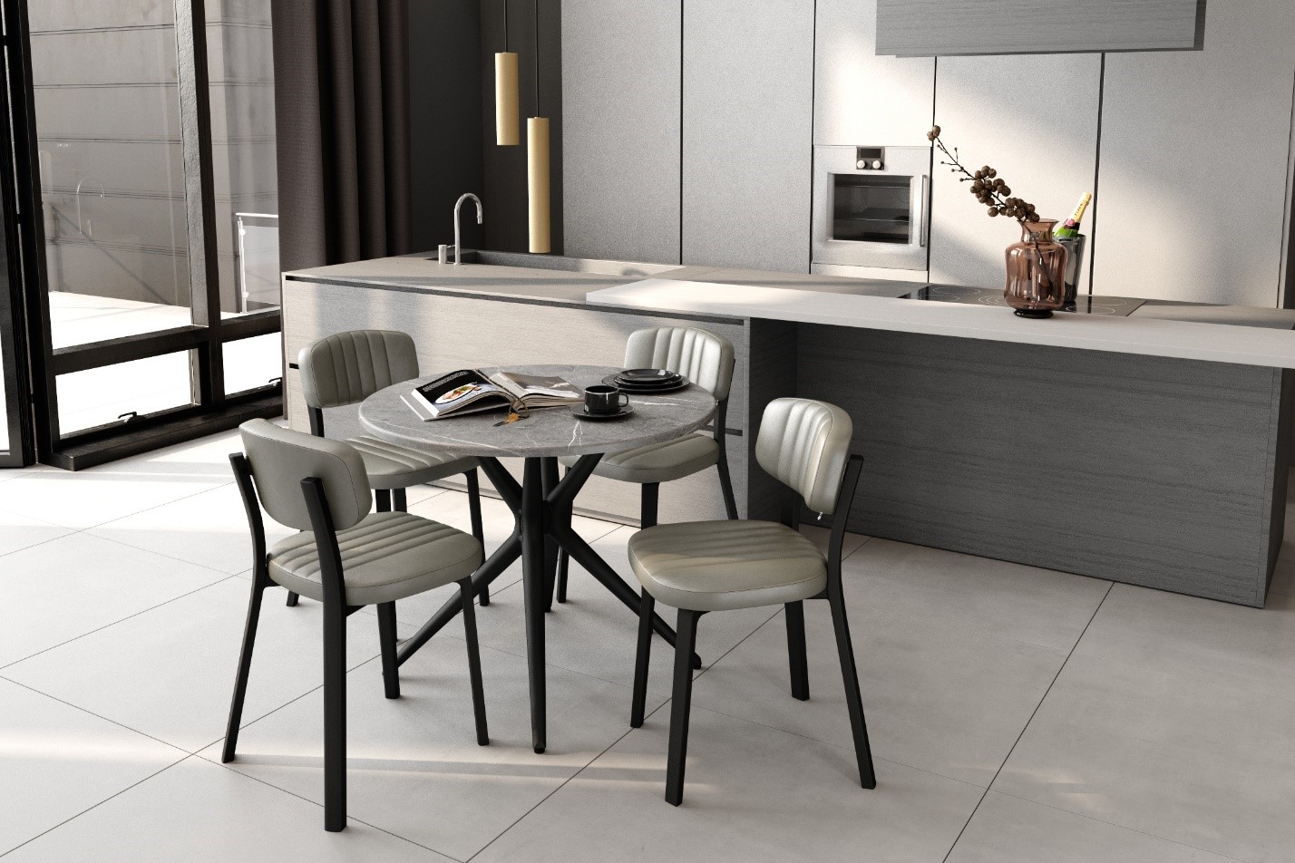 Современная кухонная мебель сочетает красоту, удобство и функциональность. Обеденная зона является одной из главных в кухонном пространстве. Современные столы и стулья превращают ее в зону притяжения для уютного семейного чаепития, утренней чашки кофе перед работой или приема гостей. Идеальная обеденная зона сочетает практичность и эстетику, задает тон в интерьере.