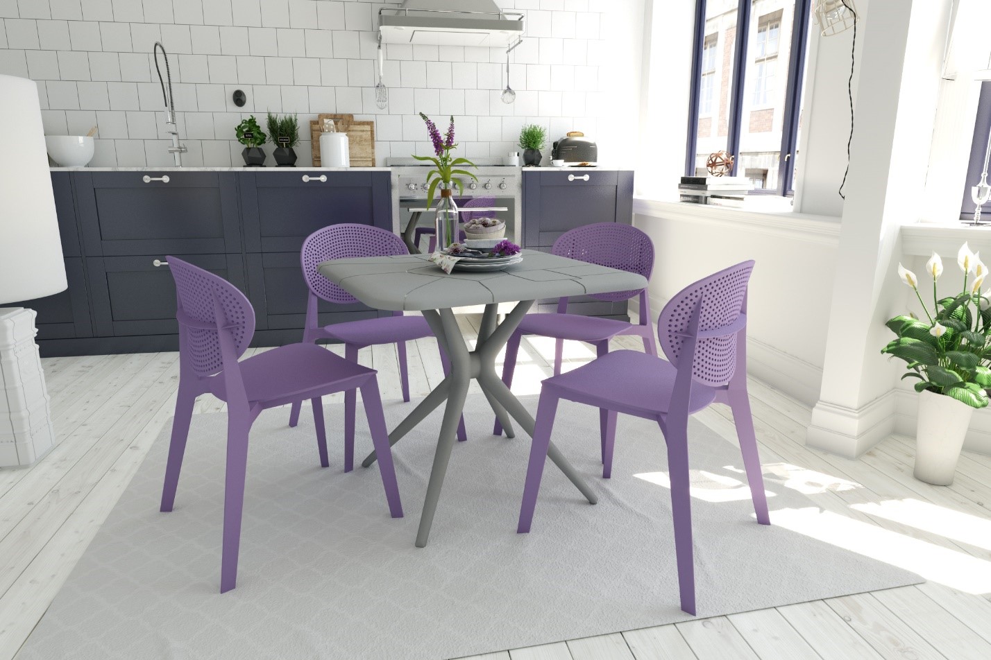 Противоположный подход в дизайне ― сделать с помощью цвета и фактуры стульев яркий акцент в минималистичном или классическом интерьере. Например, сочная зелень, вишня или лимон на фоне хромированных поверхностей кухни в стиле хай-тек.
