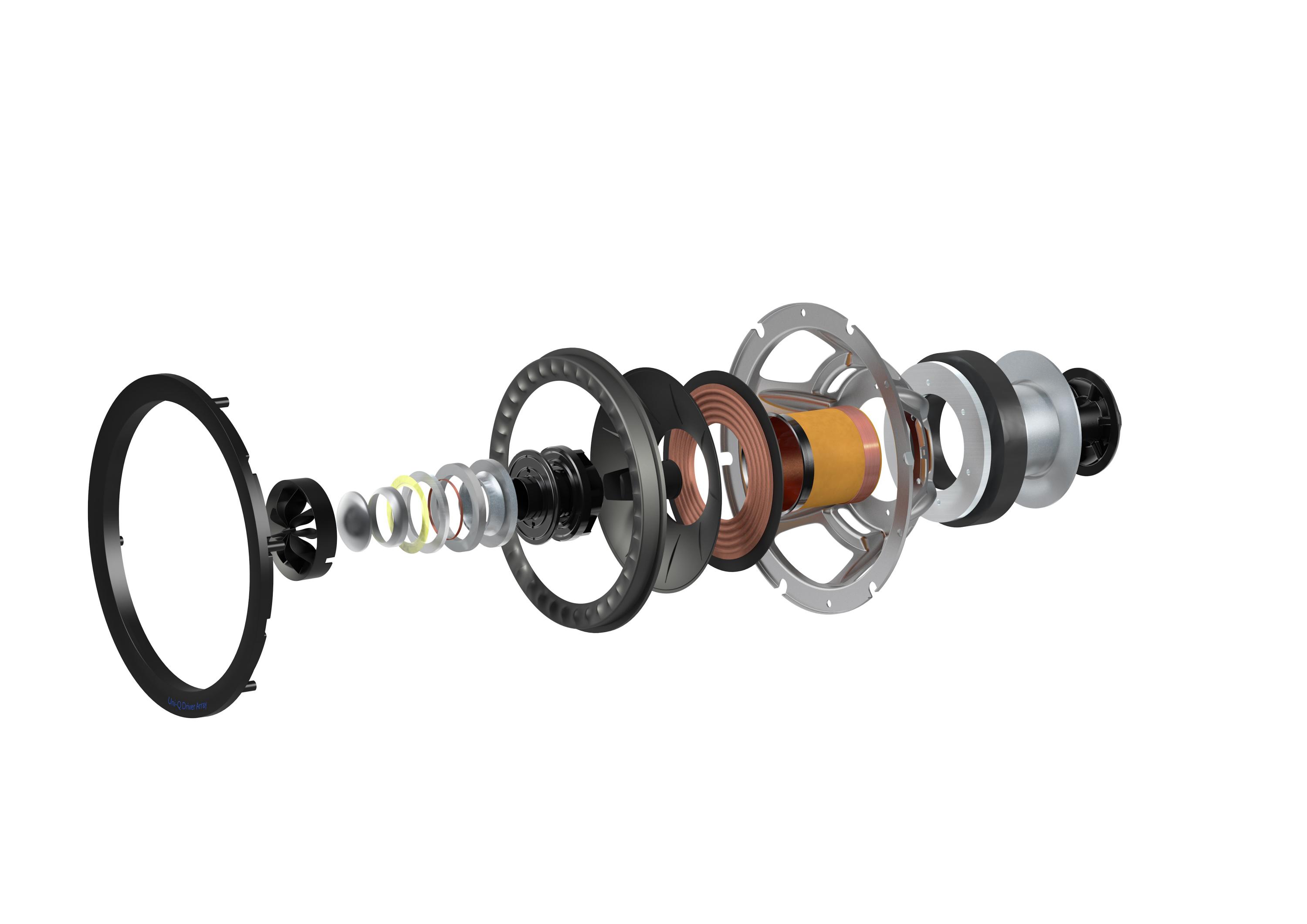 Новый большой подвес обеспечивает более длинный ход драйвера для меньших искажений на большей громкости и улучшенное поведение на граничных частотах. Улучшена центрирующая шайба. Жесткость оптимизирована для меньших искажений, что позволяет больше двигаться и лучше контролировать ход. Обеспечивает глубокий и контролируемый бас, идеально работающий в паре с ВЧ в массиве Uni-Q.