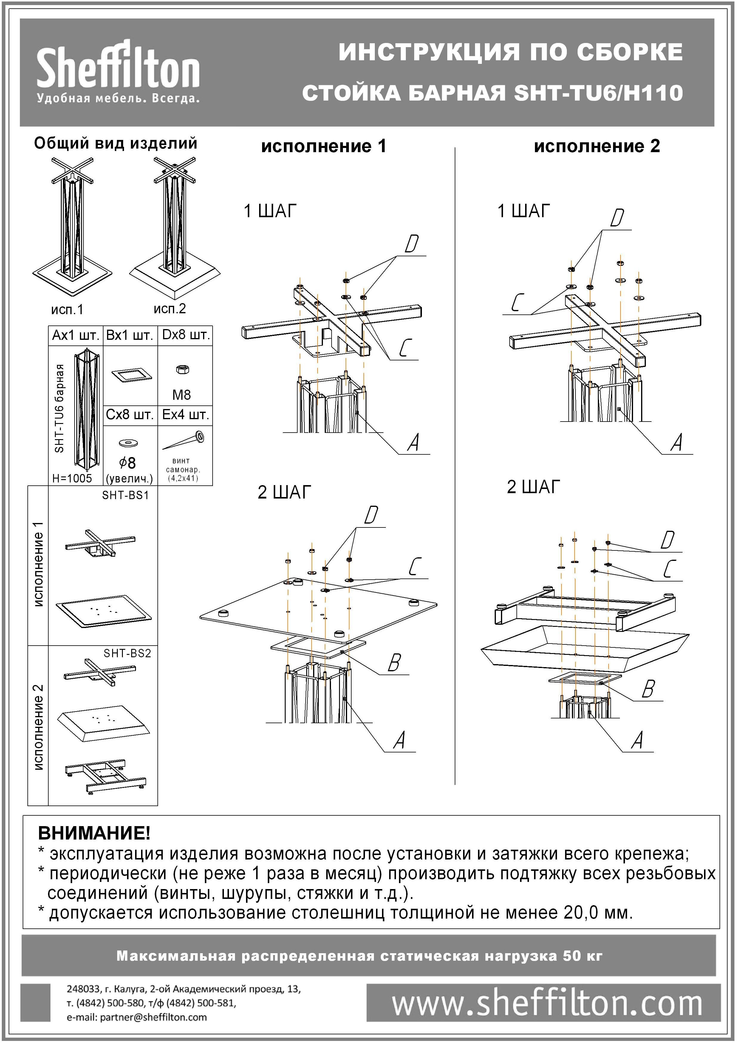 Максимальная статическая нагрузка на стол 50 кг.