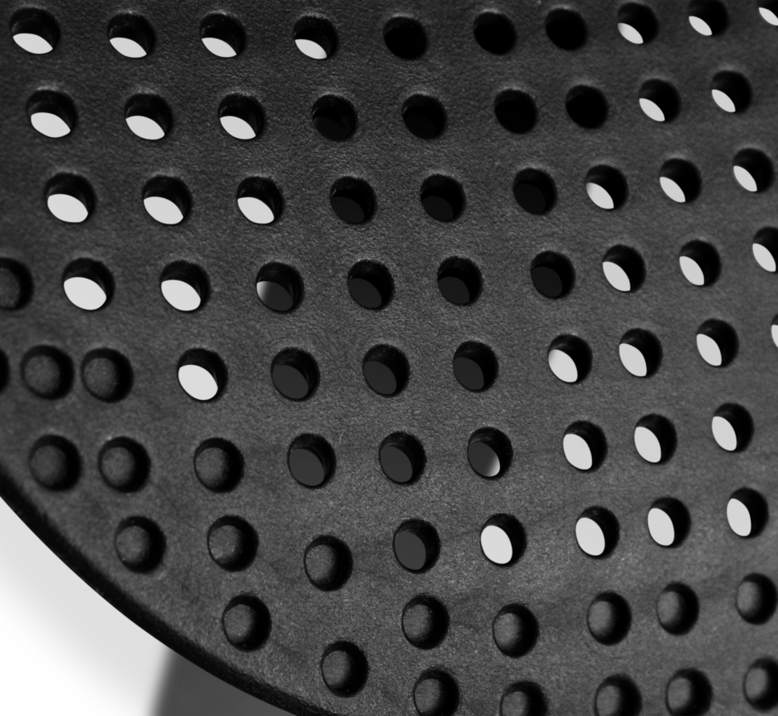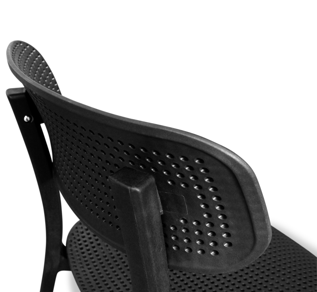 ПЕРФОРАЦИЯ СПИНКИ И СИДЕНИЯ обеспечивает легкость конструкции, придает эффектный внешний вид и не боится длительного воздействия воды, позволяя использовать на улице.
